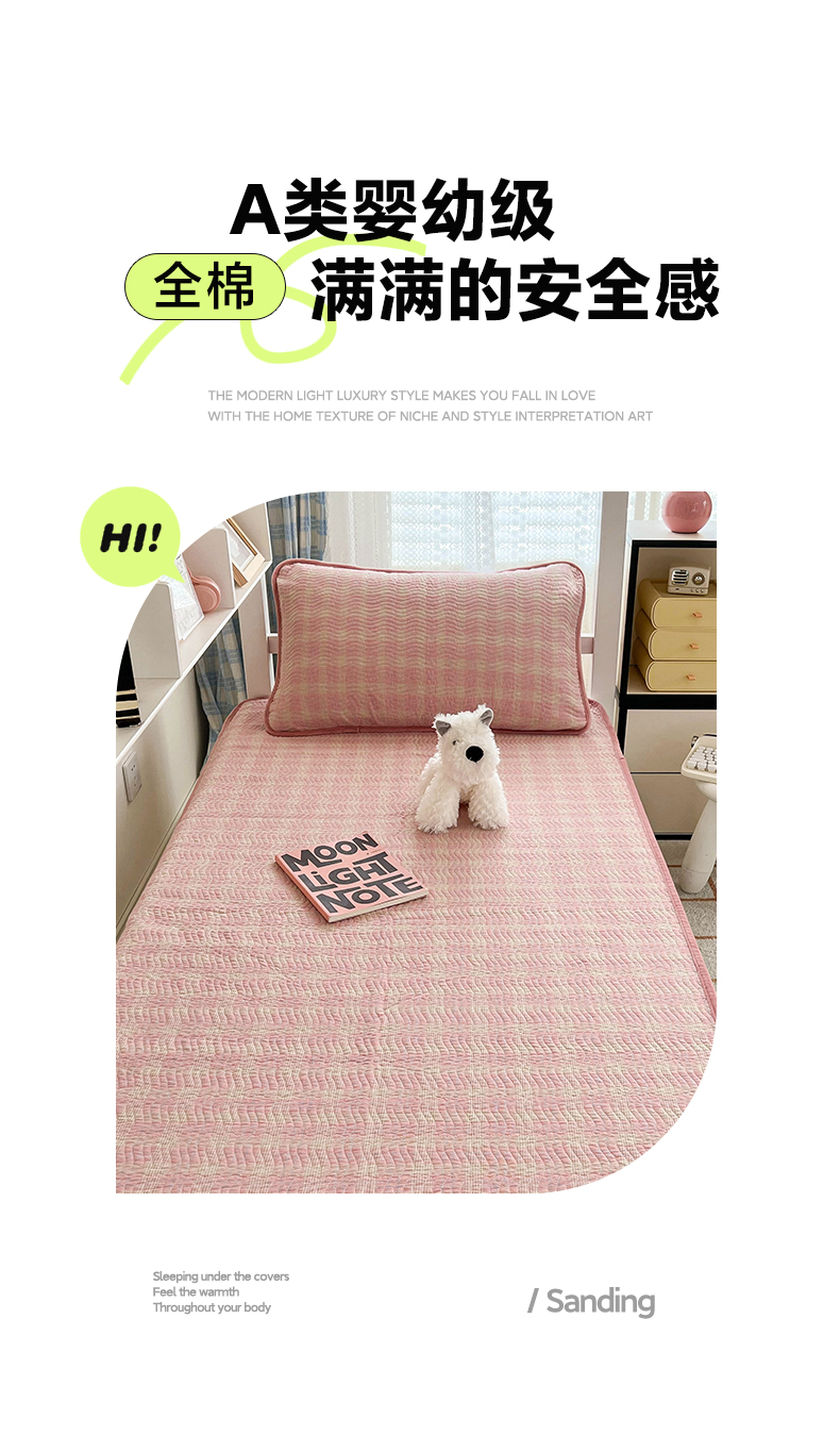 沐纯家居 2025新款婴儿绒纯棉水洗床盖俏皮狗-粉,俏皮狗-粉