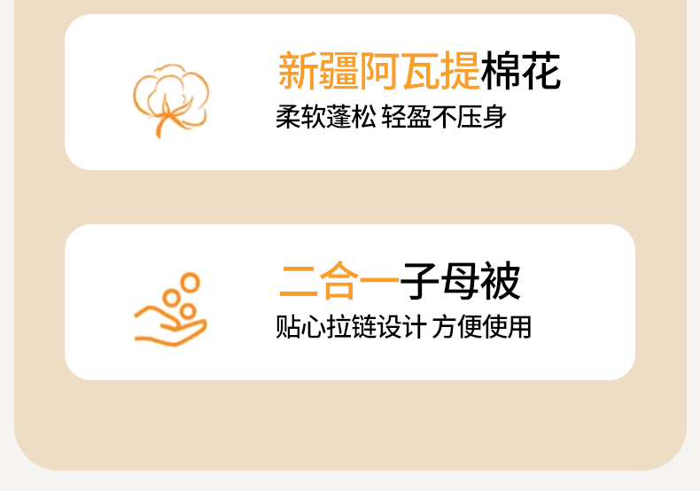 180*220cm拉链款子母被:4斤+6斤【总重约10斤】 | ¥145.00 |