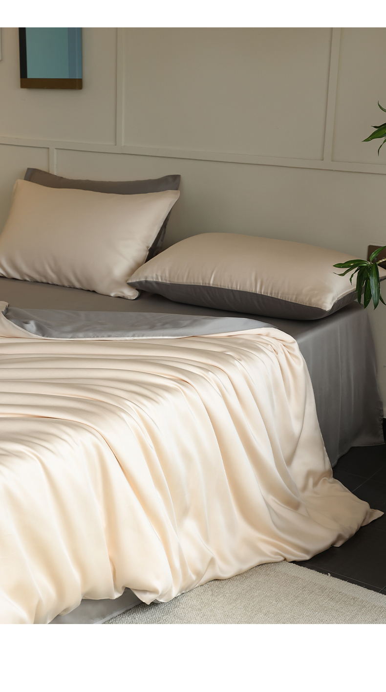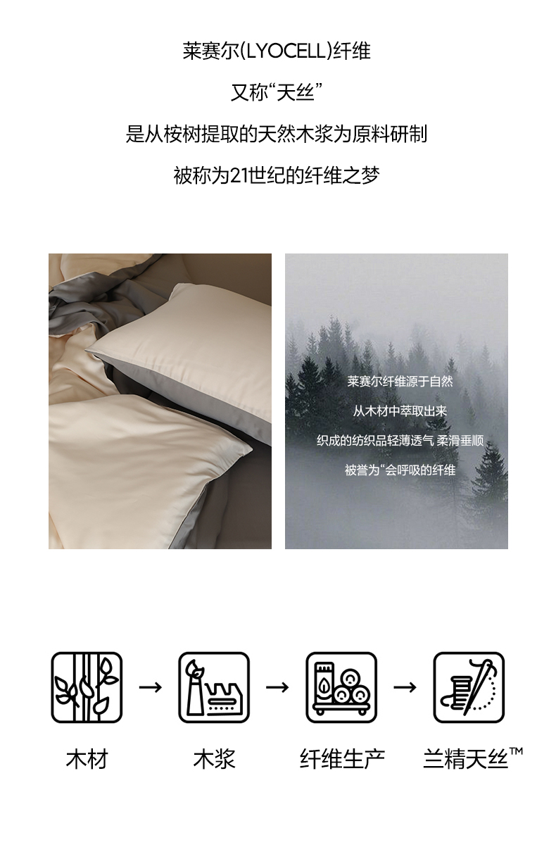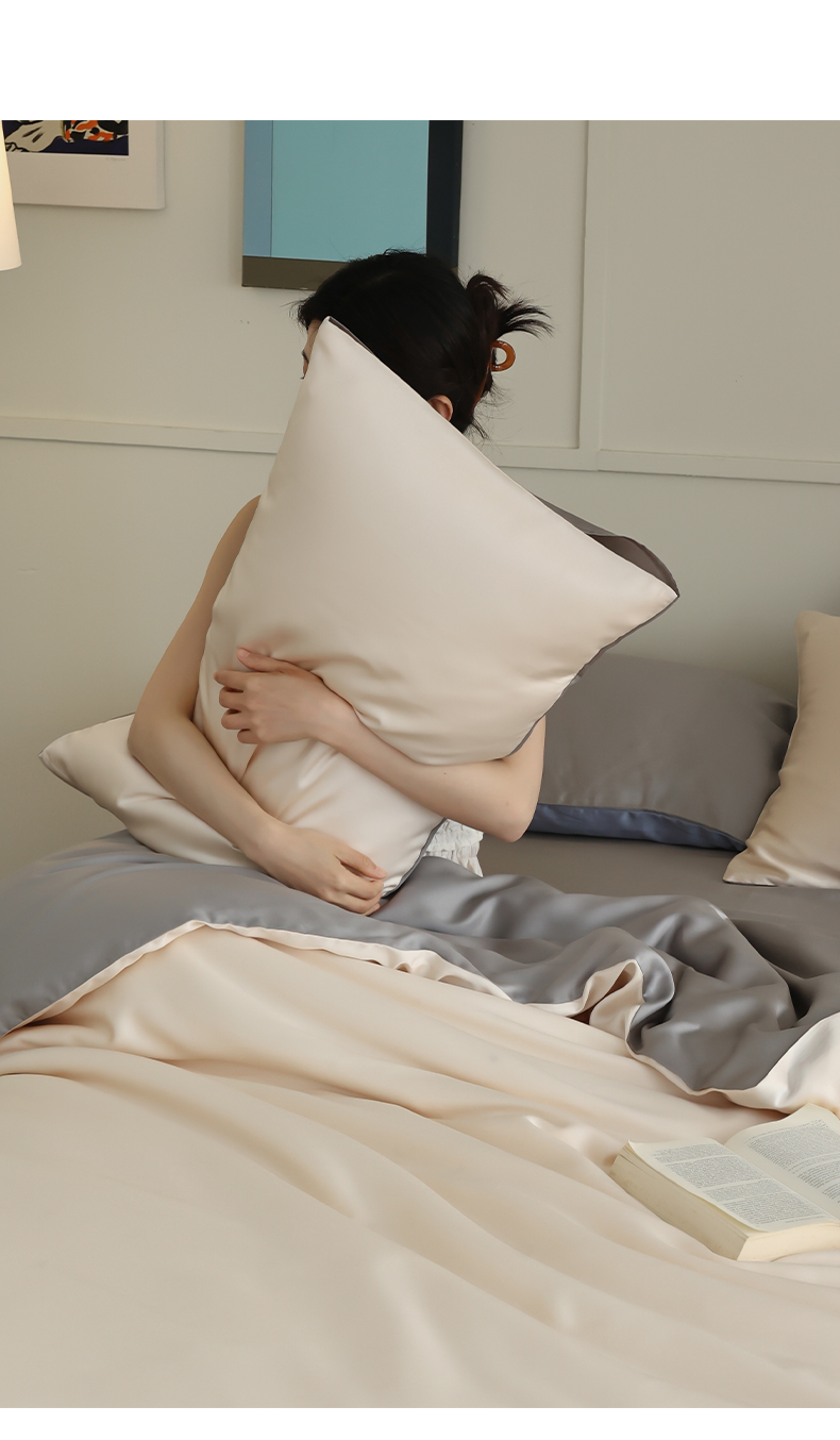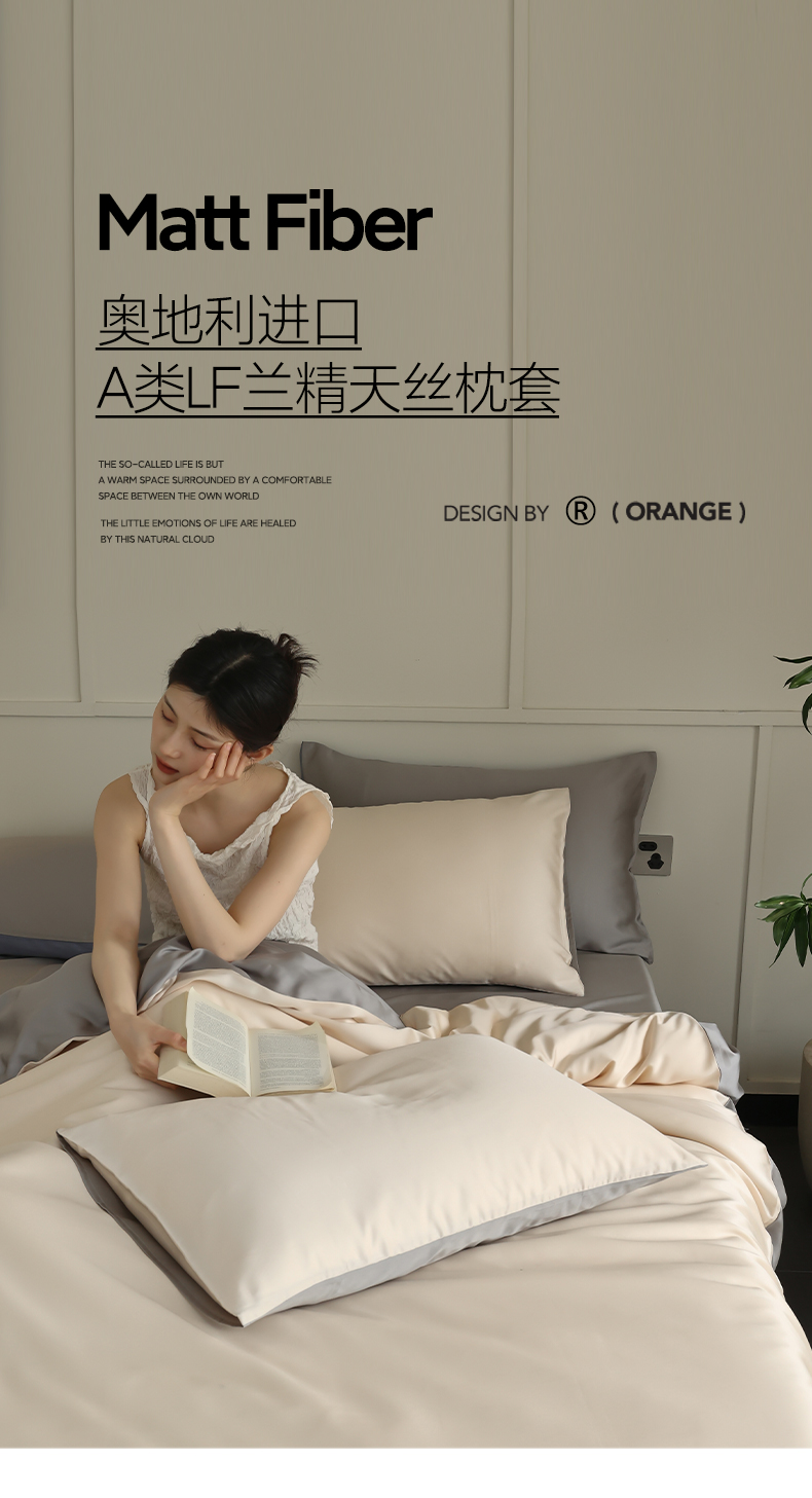 商品名称:轩和 2025新款A类LF60S兰精天丝单品枕套 奶酪黄+伯爵灰