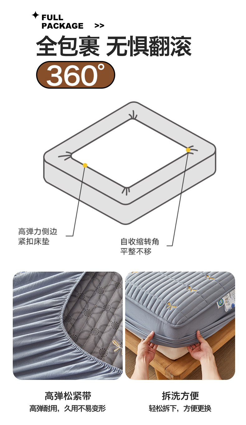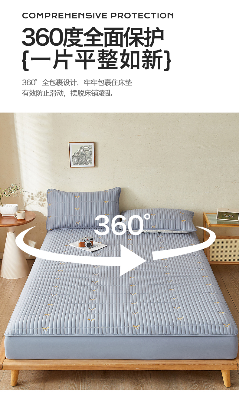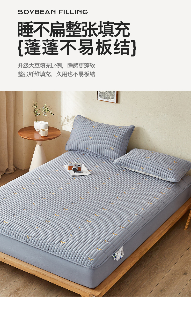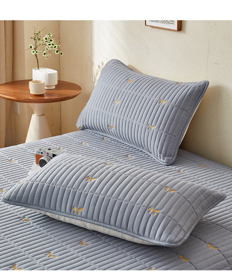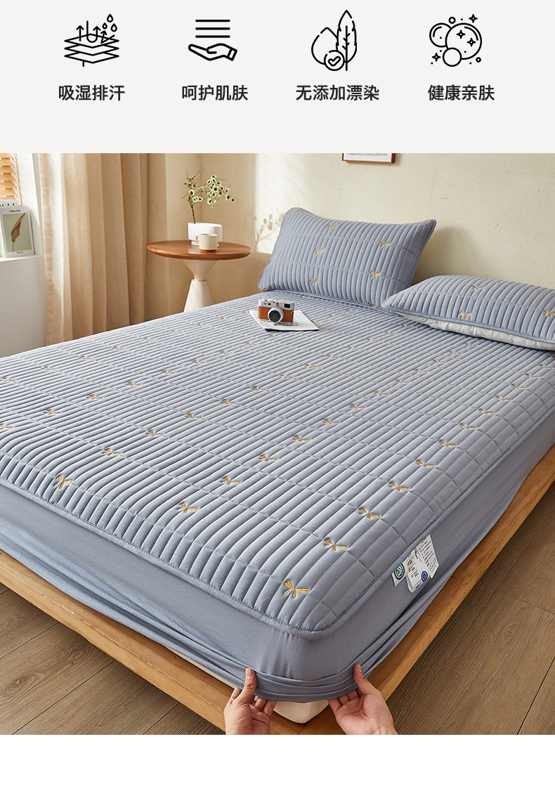 叠派家纺 2024新款水洗棉刺绣夹棉床笠 蝴蝶结-蓝灰