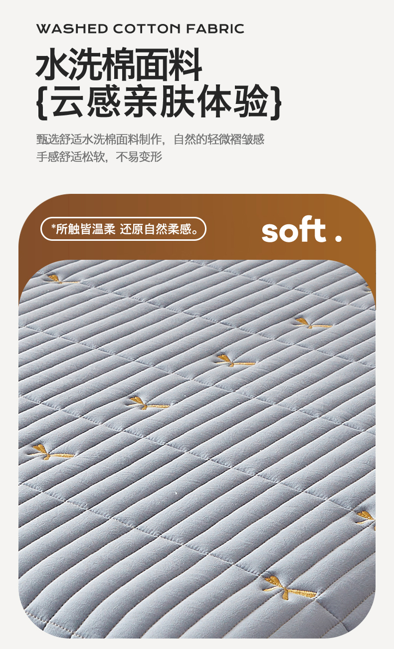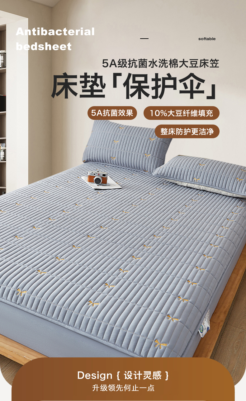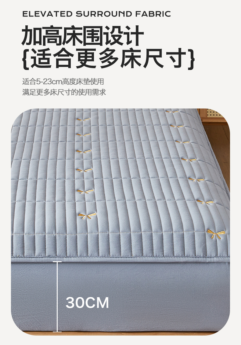 • 91家纺网 家纺一手货源 找家纺 叠派家纺 2024新款水洗棉刺绣夹棉床笠 蝴蝶结-蓝灰