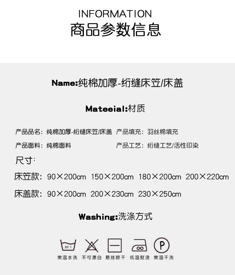 商品名称:(总)漫时光 2025新款纯棉素色床盖学生宿舍夹棉床笠