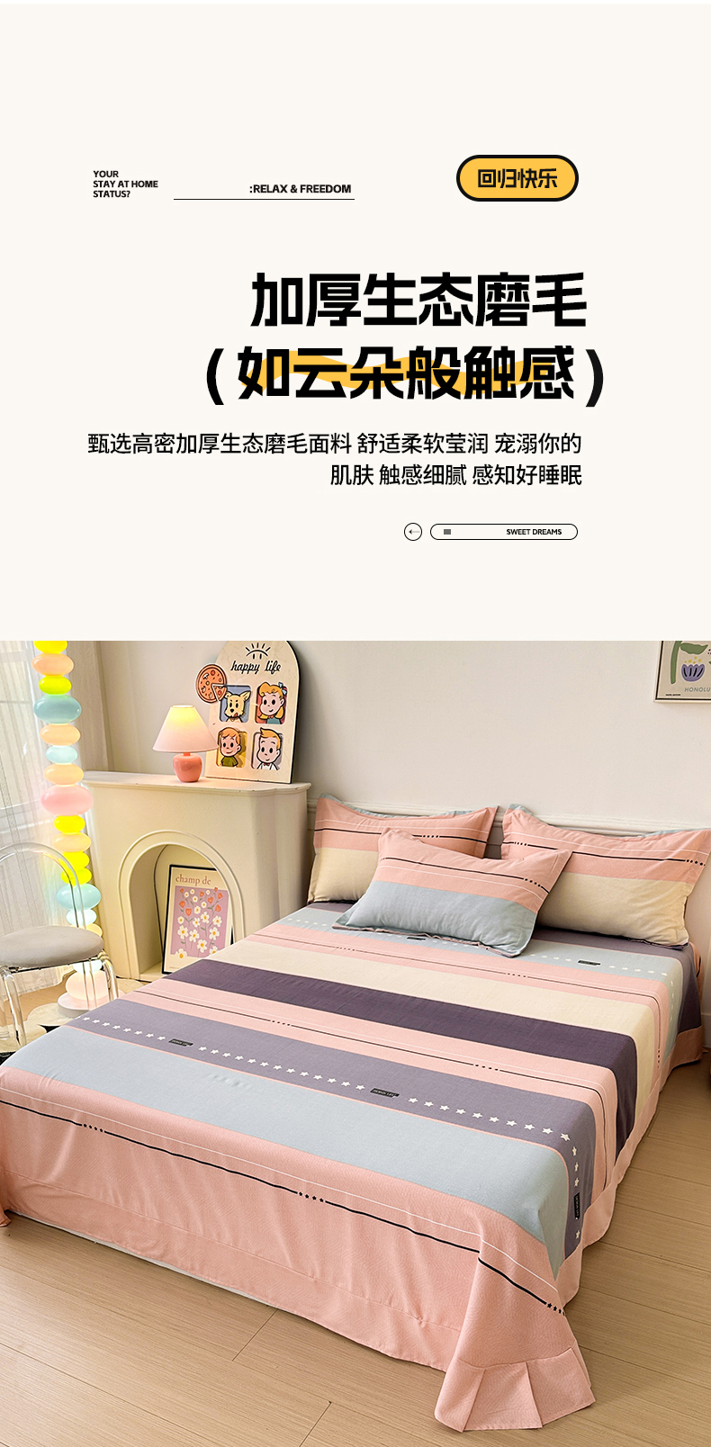 • 91家纺网 家纺一手货源 找家纺 2025新款加厚生态磨毛单床单 杰森