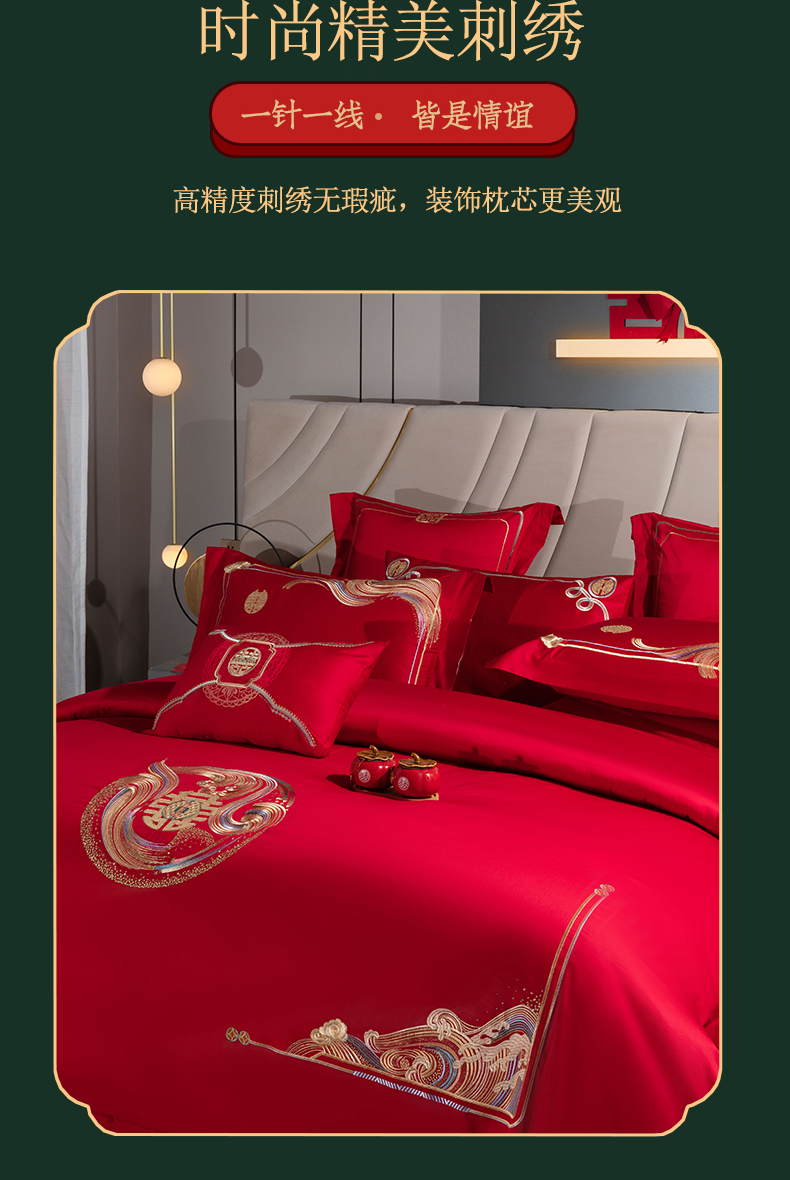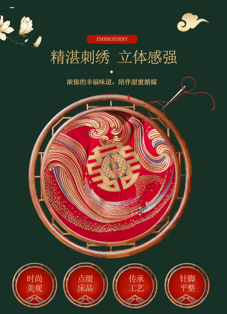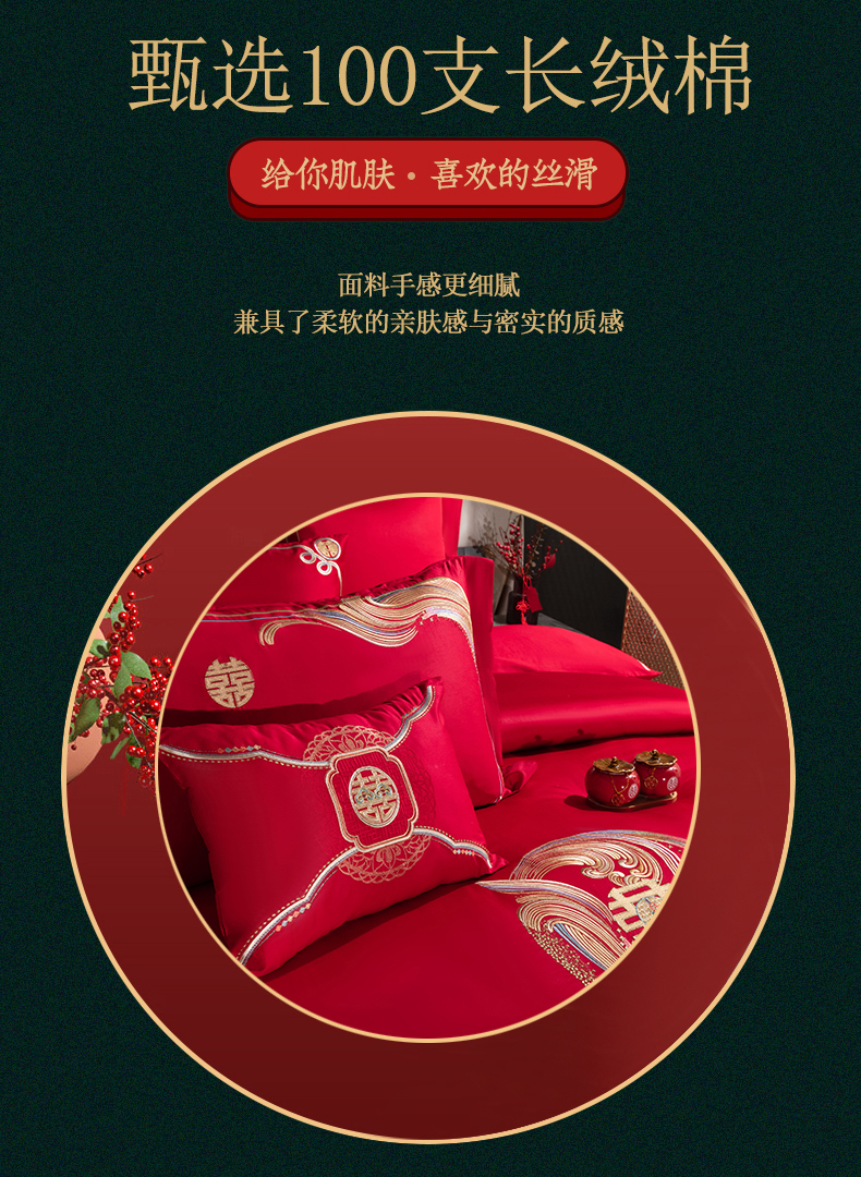 当前位置: 91家纺网 > 商品网购 > 床品套件 > 四件套 > 长绒棉四件套 > 2025新款长绒棉长绒棉贡缎提花款新中式古典韵味精美刺绣婚庆四件套多件套 花好月圆-