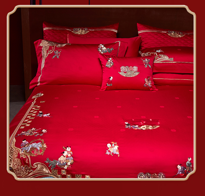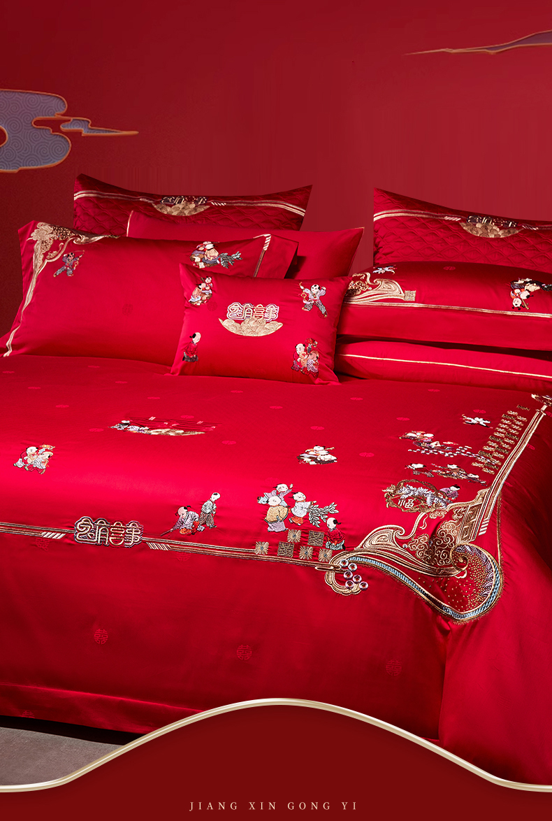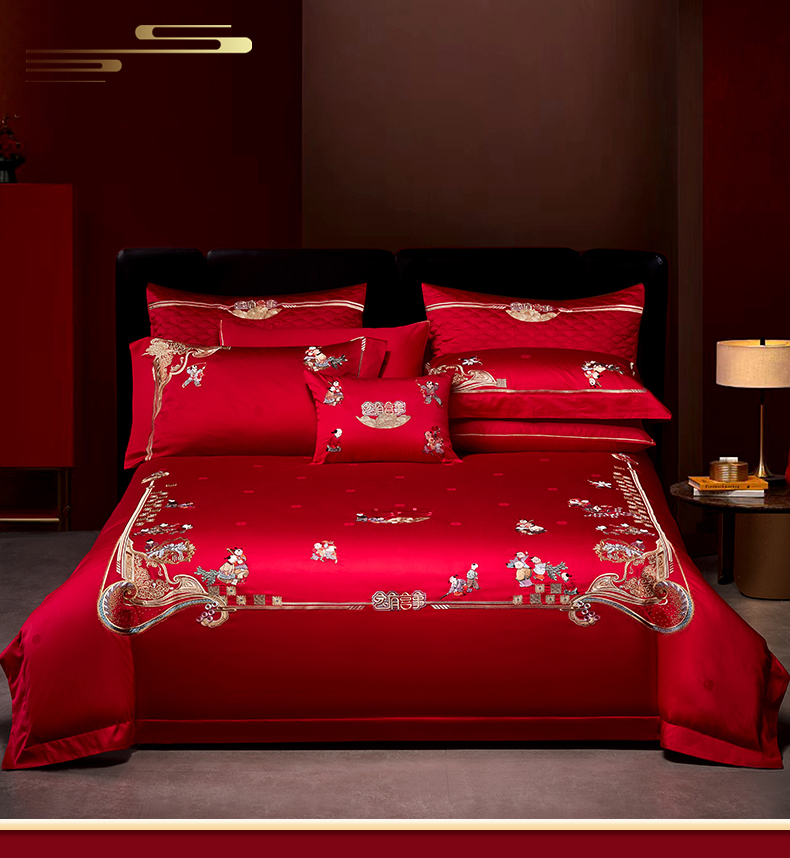 当前位置: 91家纺网 > 商品网购 > 床品套件 > 四件套 > 长绒棉四件套 > 2025新款长绒棉长绒棉贡缎提花款新中式古典韵味精美刺绣婚庆四件套多件套 盛世华章