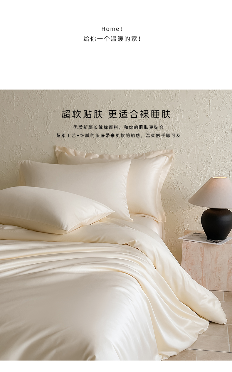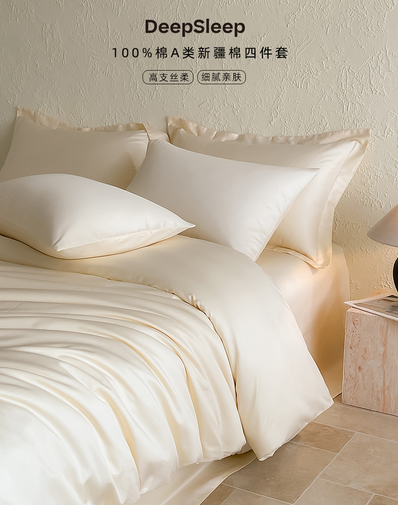 商品名称:Mr.pig猪先生水洗棉 2024新品A类100全棉高支高密贡缎新疆长绒棉四件套纯棉床单被套学生宿舍三件套枕套床笠床上用品 奶昔白