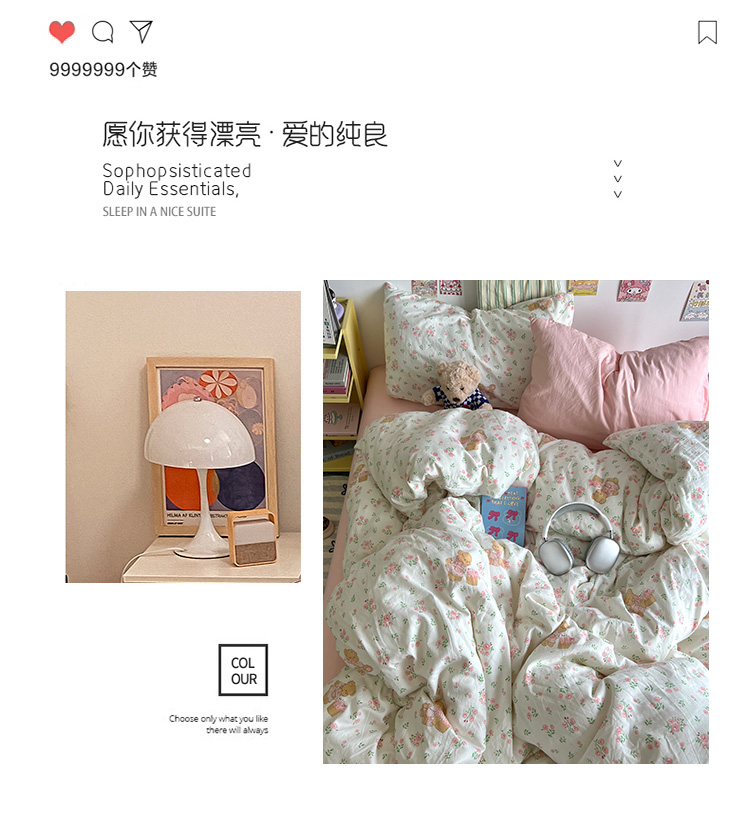 当前位置: 91家纺网 > 商品网购 > 床品套件 > 四件套 > 水洗棉四件套 > 原素 2024学生季专属A类水洗棉印花四件套 蜜糖莉娜