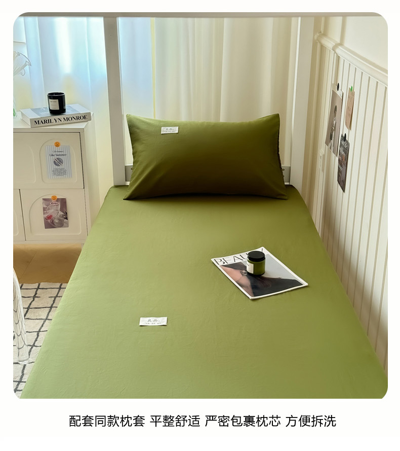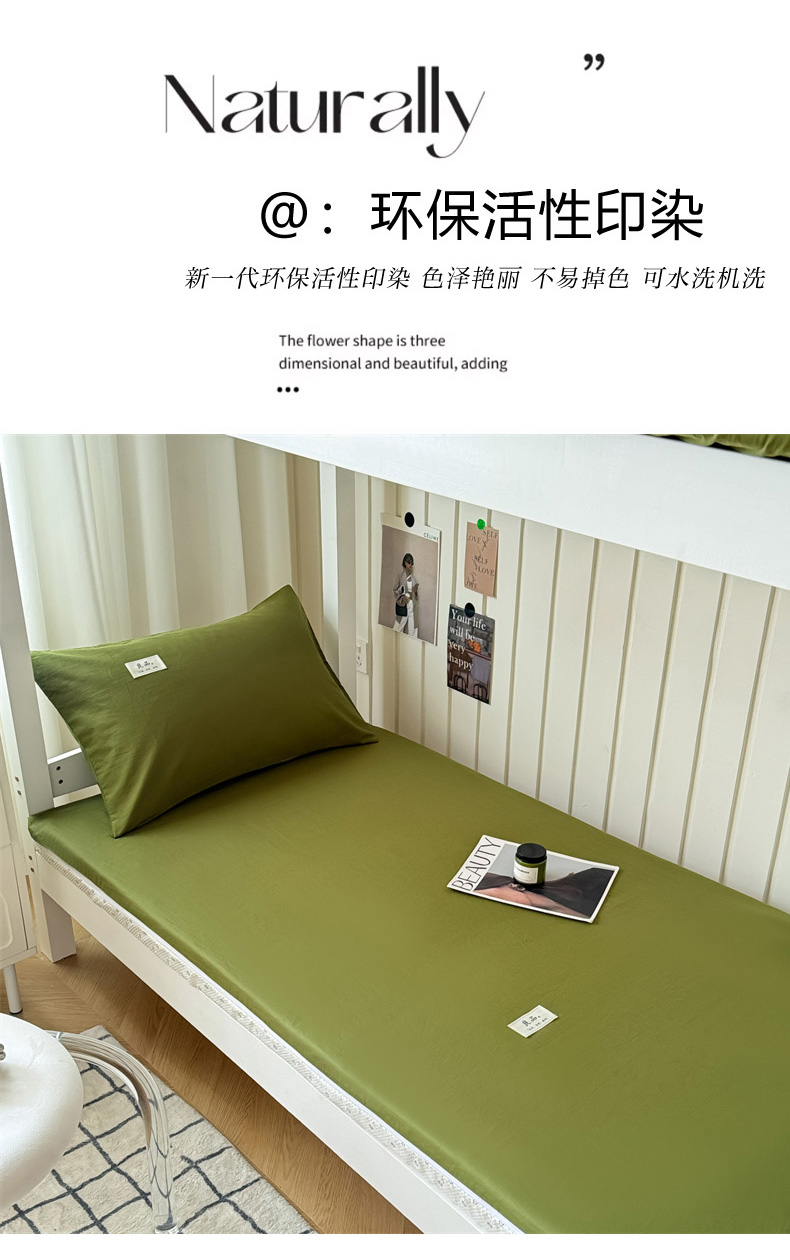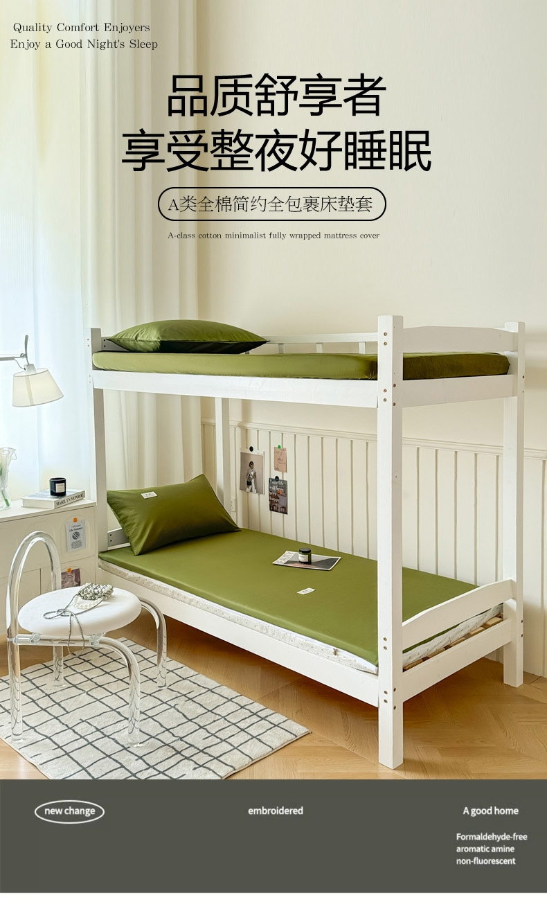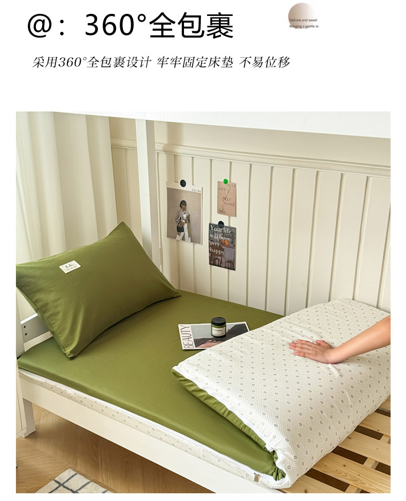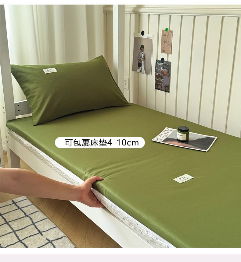 • 91家纺网 家纺一手货源 找家纺 眠博士 2024新款A类学生床纯色40支13372全棉床笠床垫保护套 床垫套-军绿