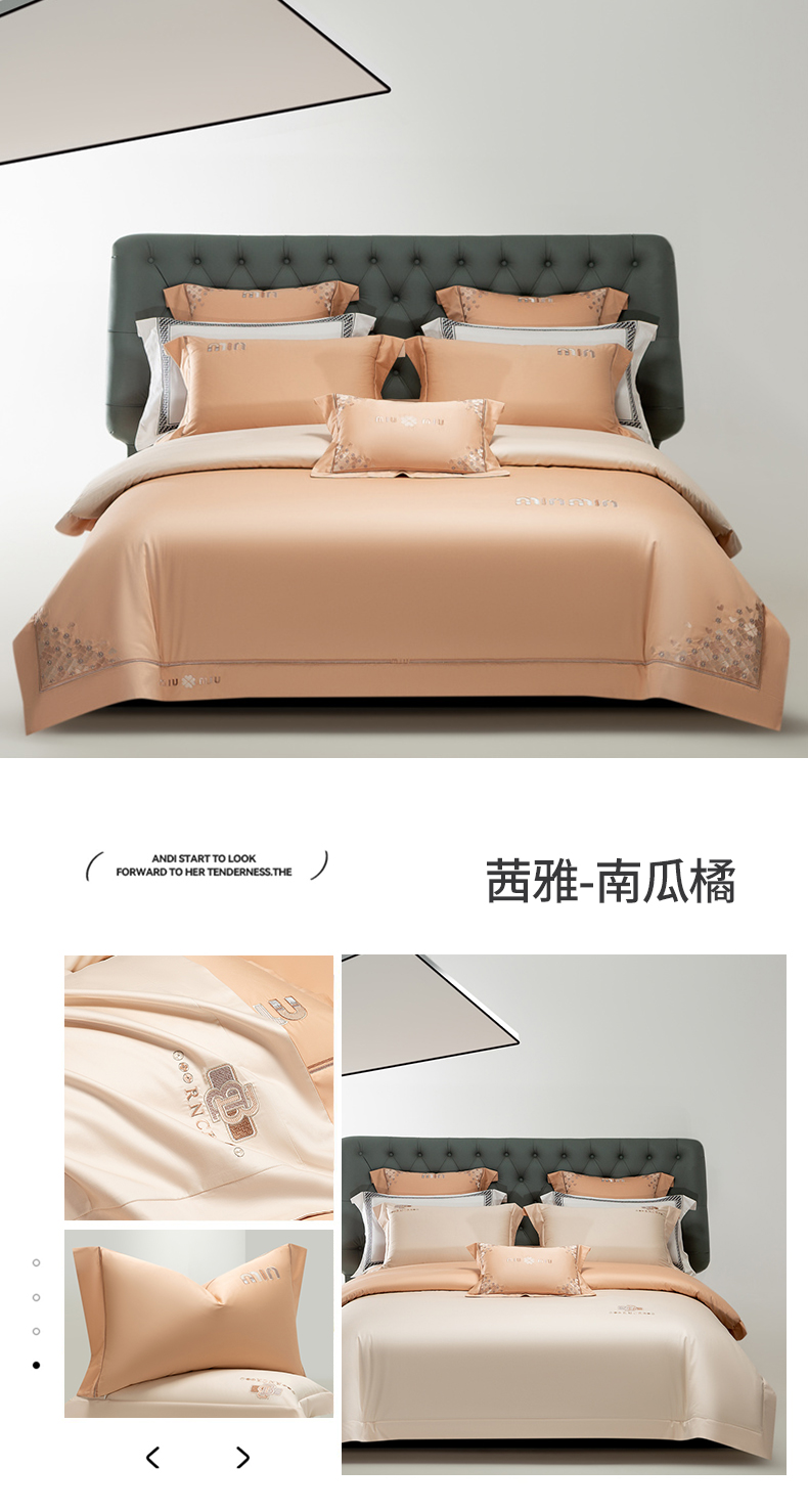商品名称:2025新款AB版长绒棉高端绣花四件套-茜雅 茜雅-南瓜橘