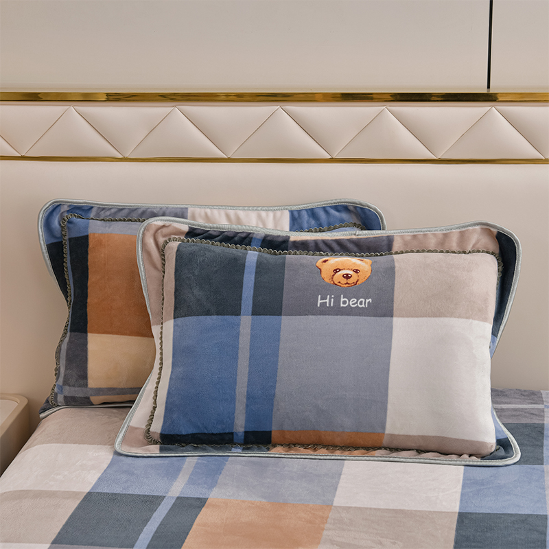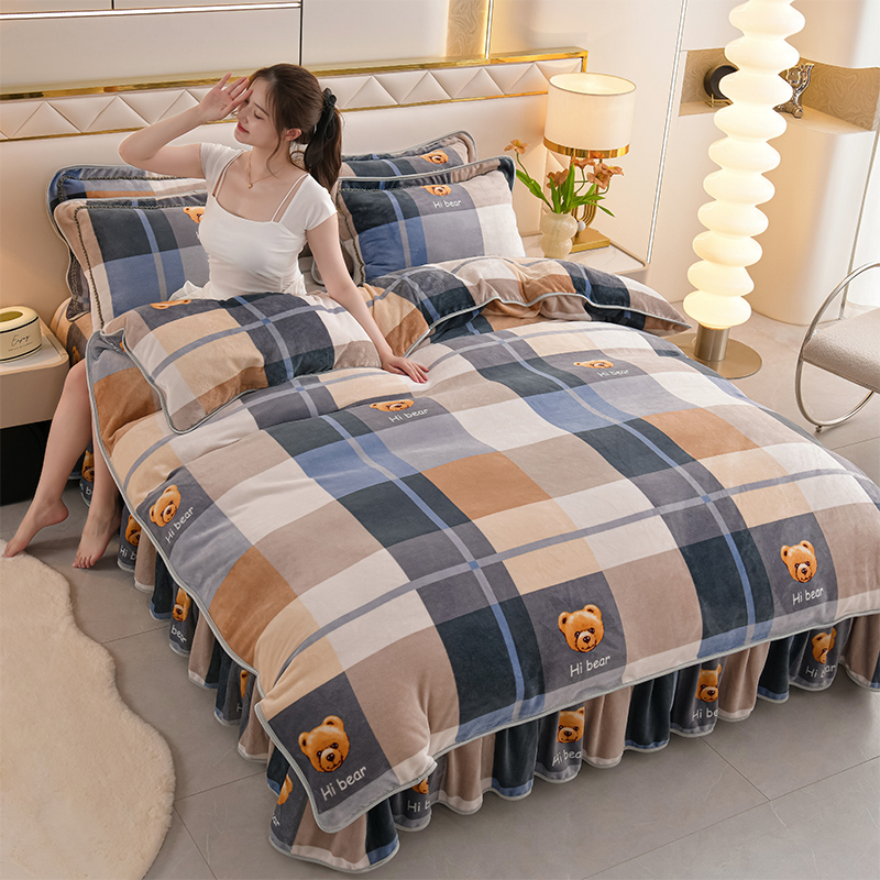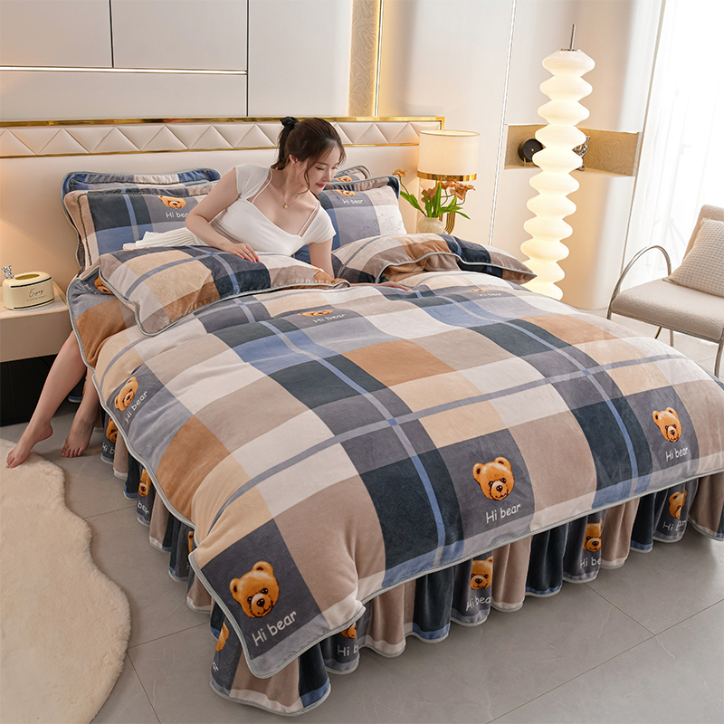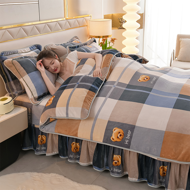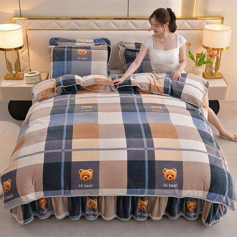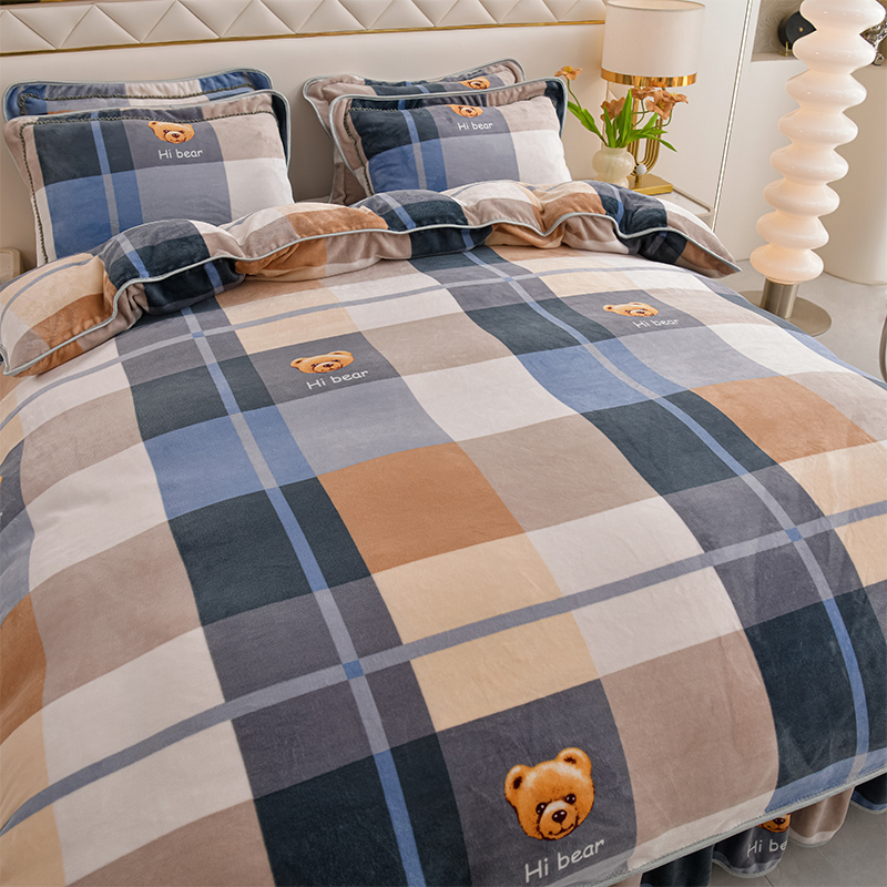 爱洛家纺 2024新款高克重牛奶绒印花四件套 格子熊