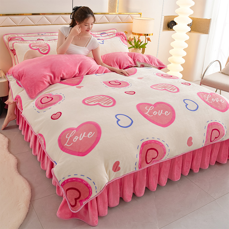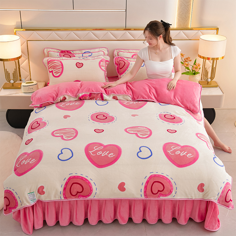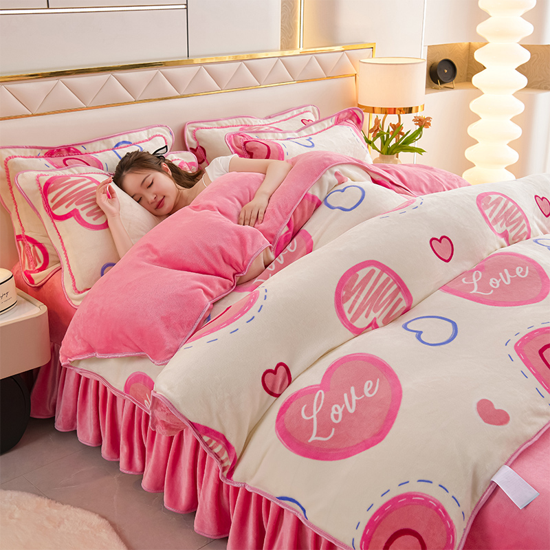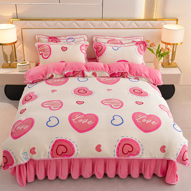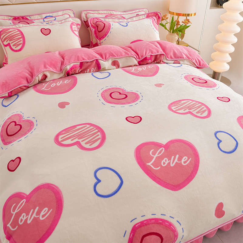 爱洛家纺 2024新款高克重牛奶绒印花四件套 心心相印