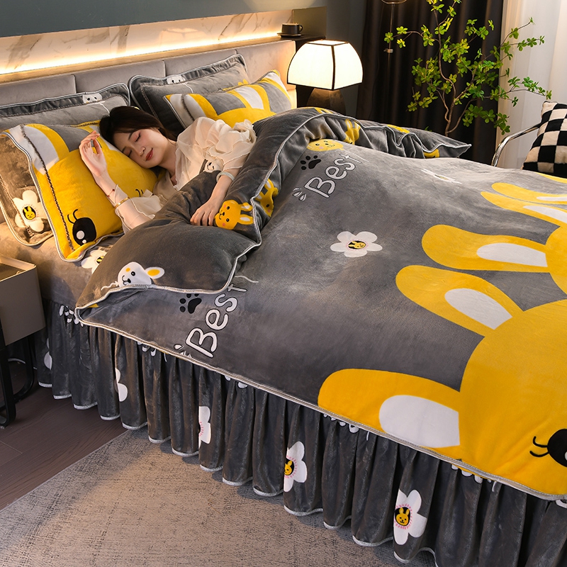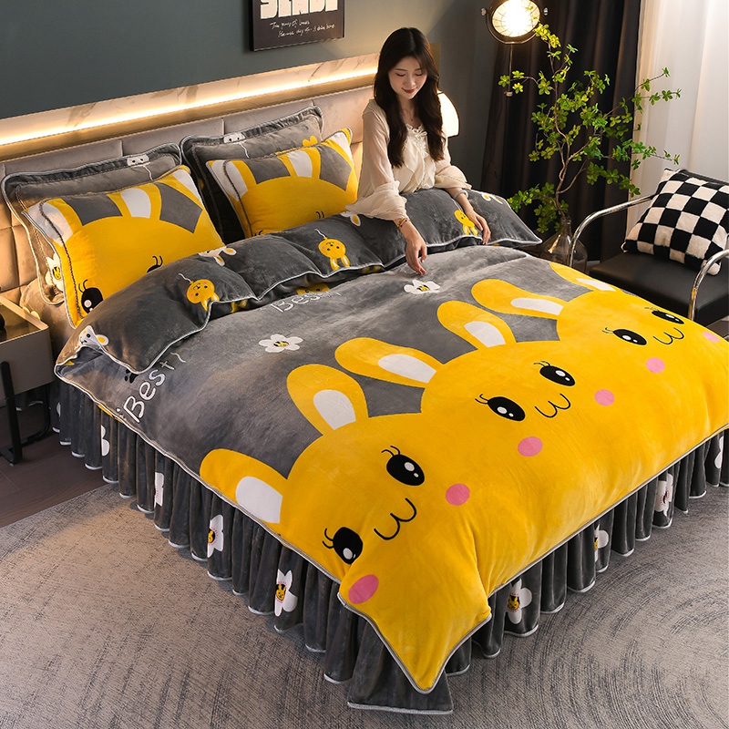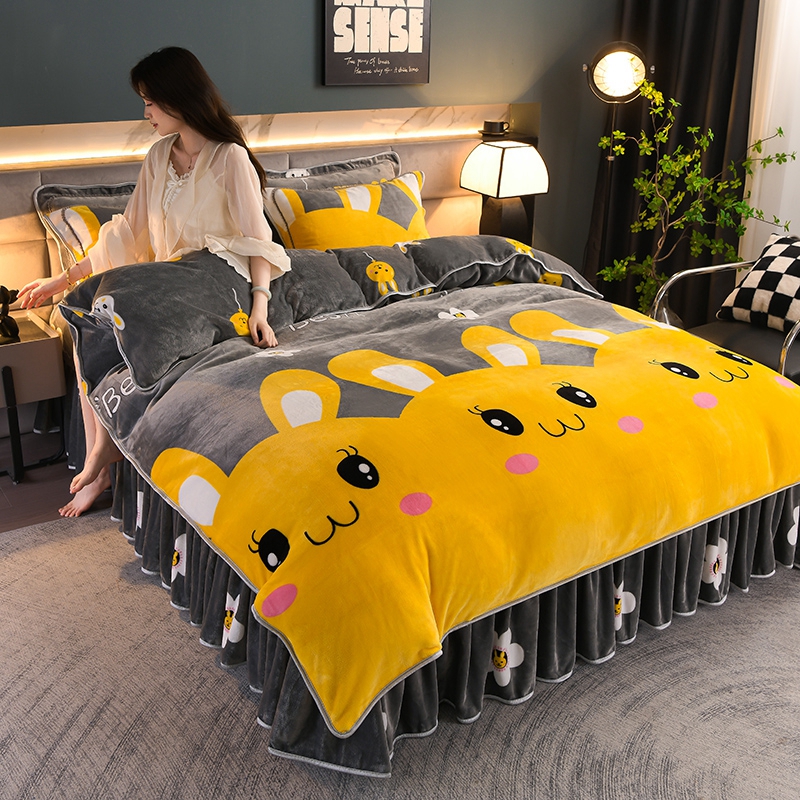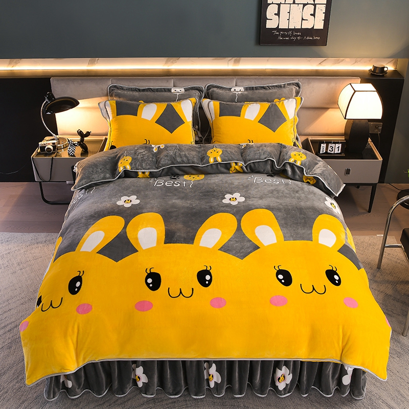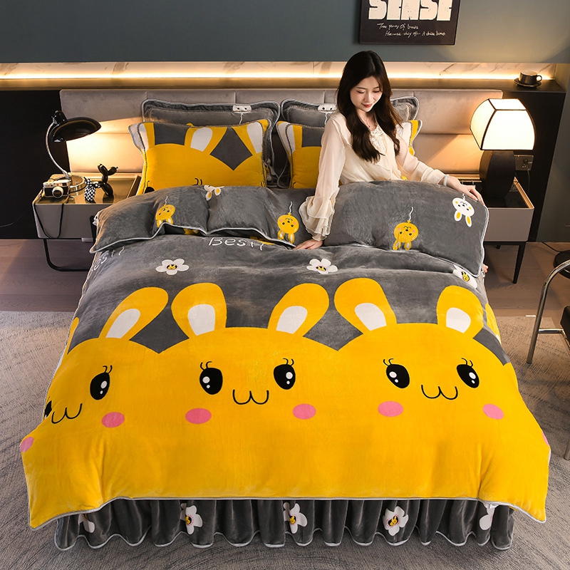 曼尼家纺 2025新款7斤高克重牛奶绒四件套 小兔吉米 黄