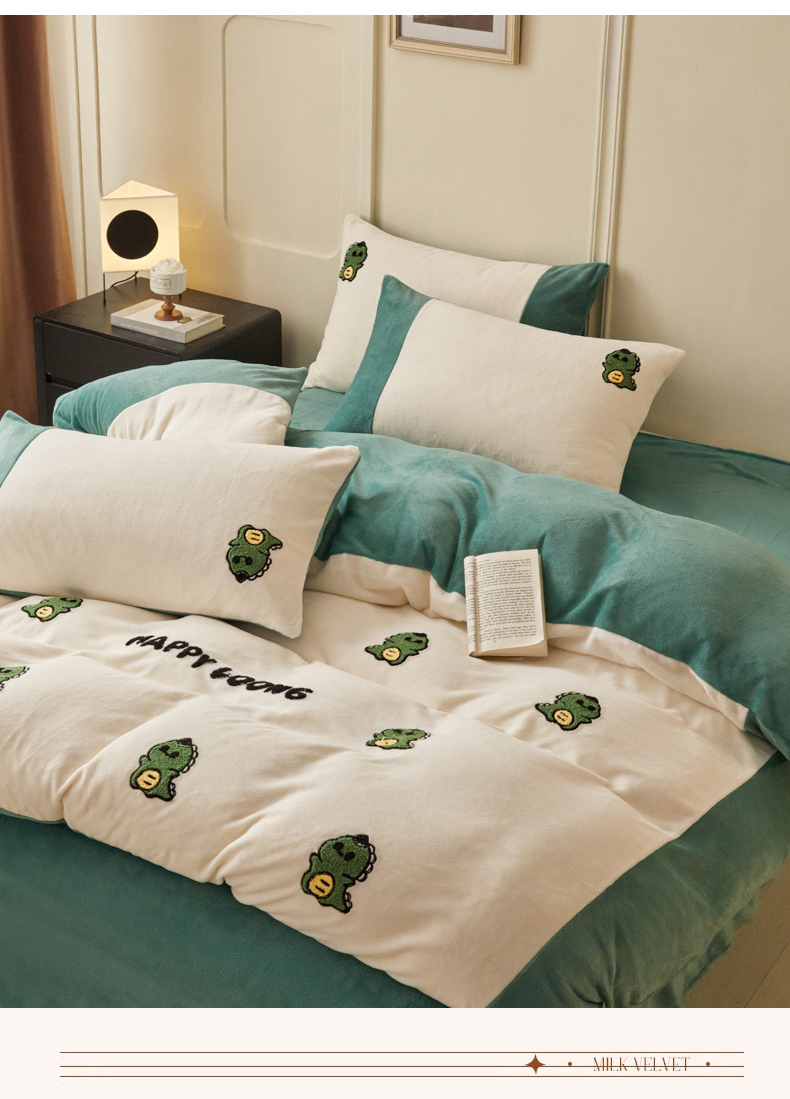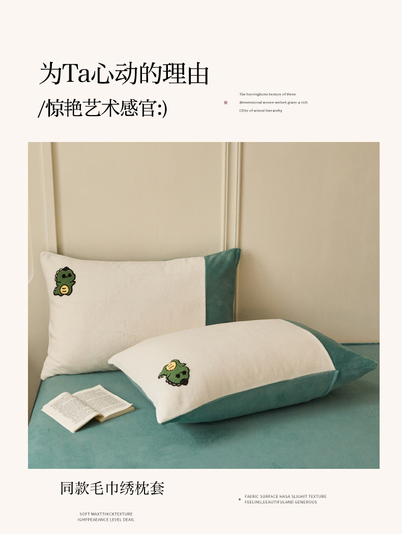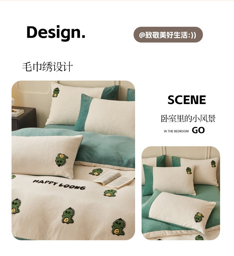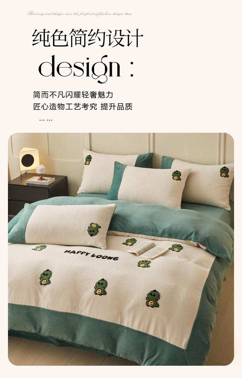 (总)恋佳居 2025新款高克重全工艺牛奶绒毛巾绣四件套,嗨皮狗复古紫,嗨皮狗咖色,嗨皮狗米色,恐龙绿色,恐龙米色,熊猫绿色,熊猫米色,中式熊猫绿色,中式熊猫米色