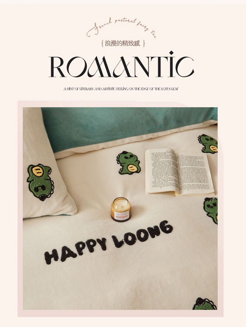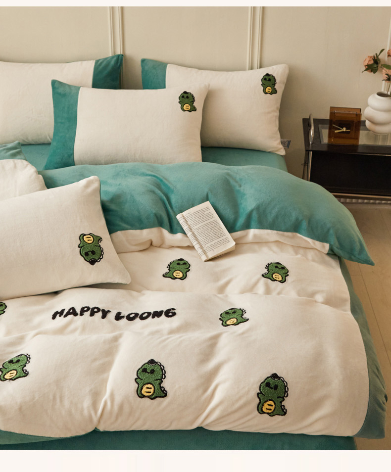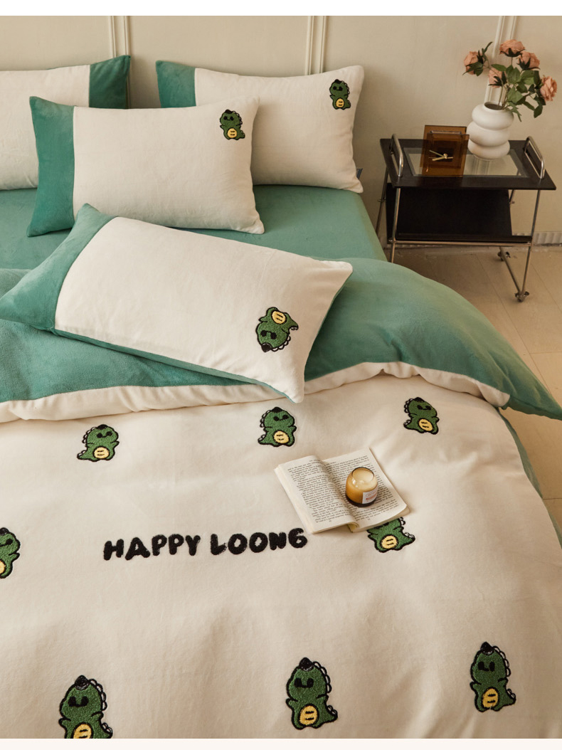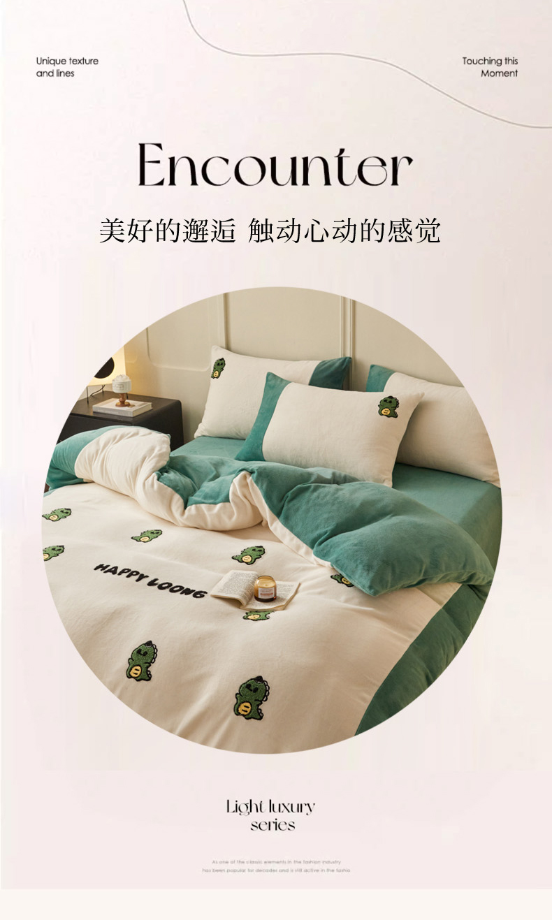 恋佳居 2025新款高克重全工艺牛奶绒毛巾绣四件套 恐龙米色
