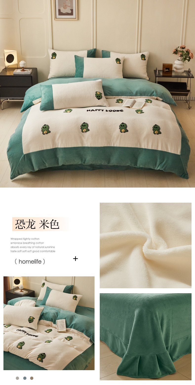 商品名称:恋佳居 2025新款高克重全工艺牛奶绒毛巾绣四件套 恐龙米色