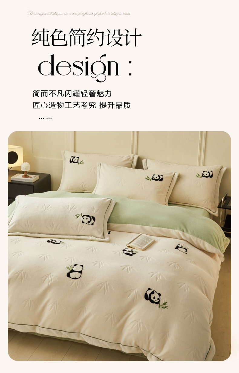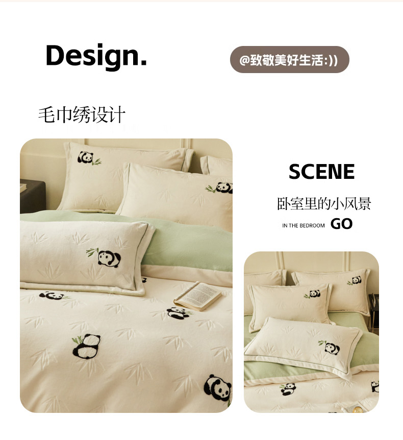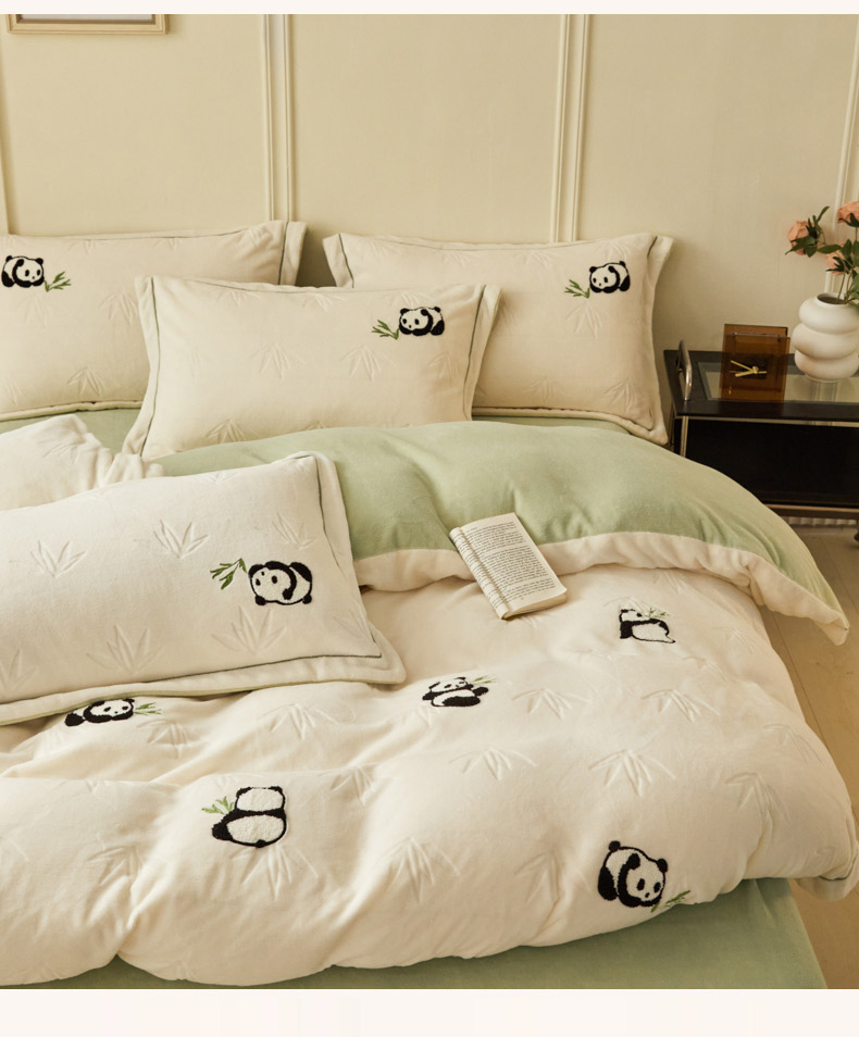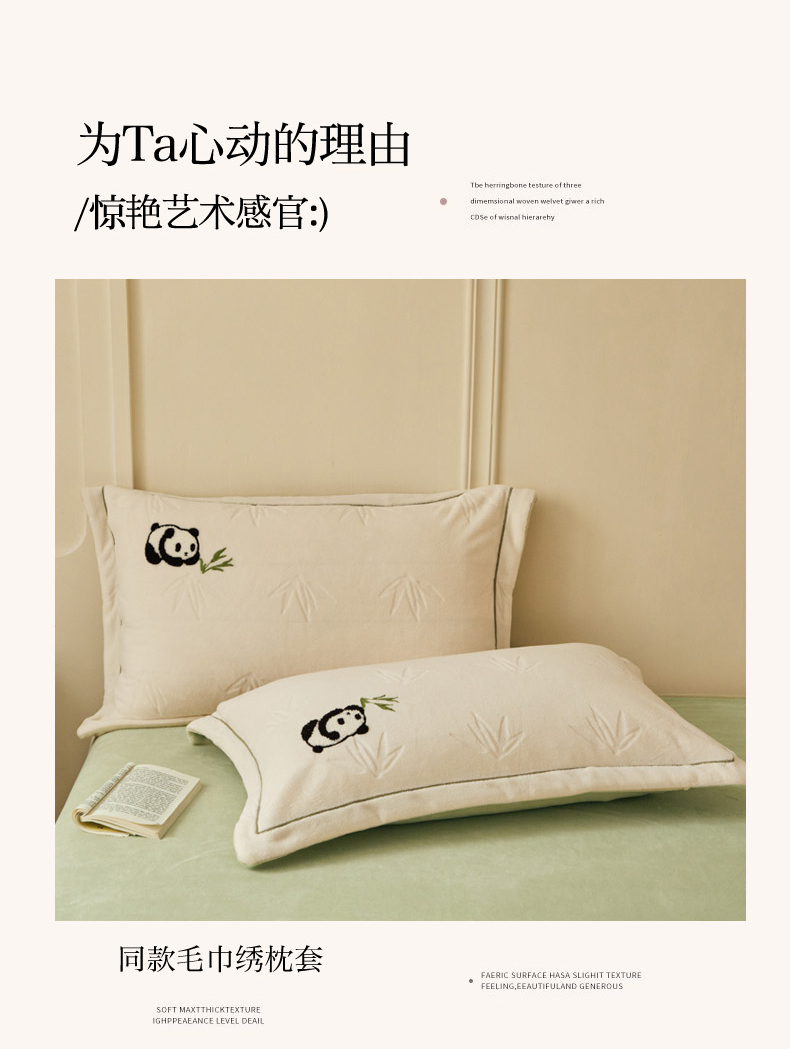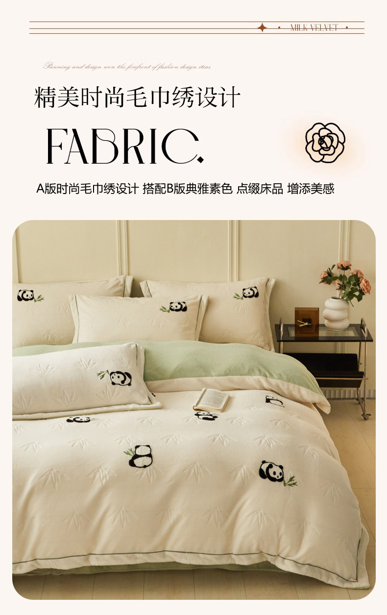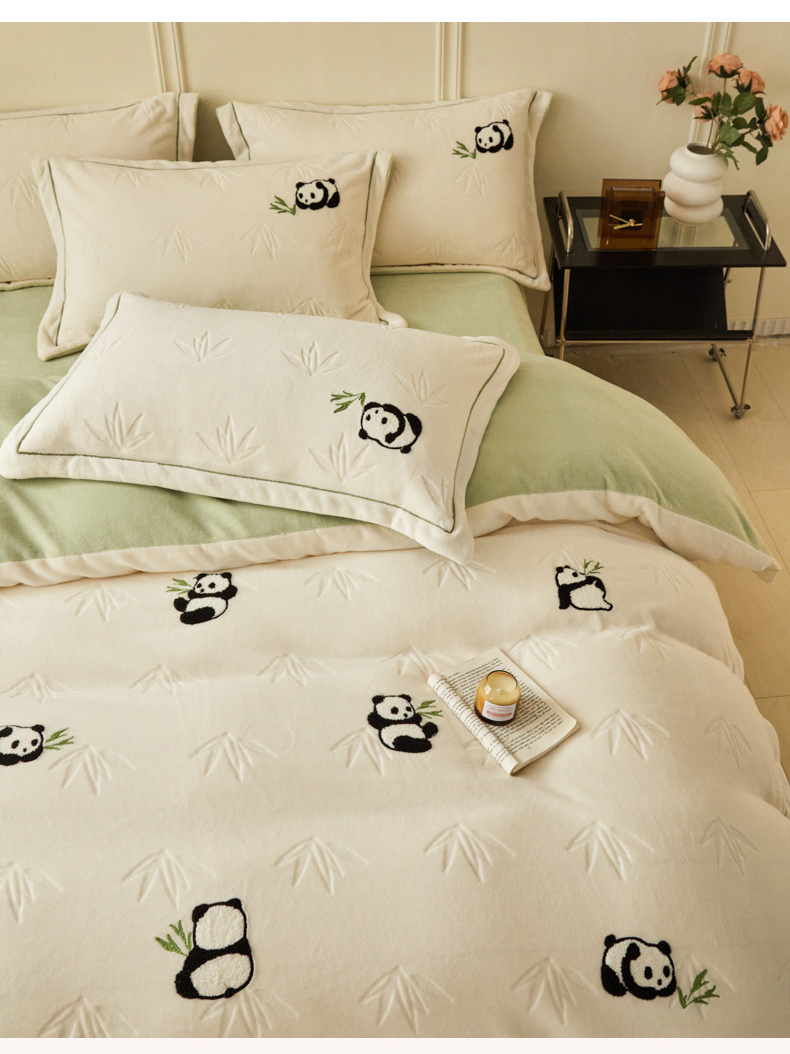 商品名称:恋佳居 2025新款高克重全工艺牛奶绒毛巾绣四件套 熊猫米色