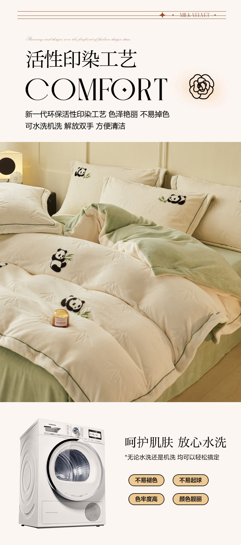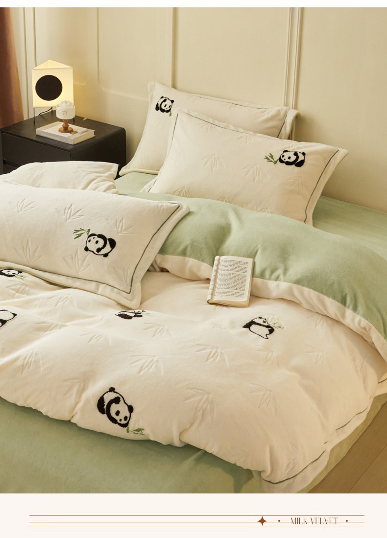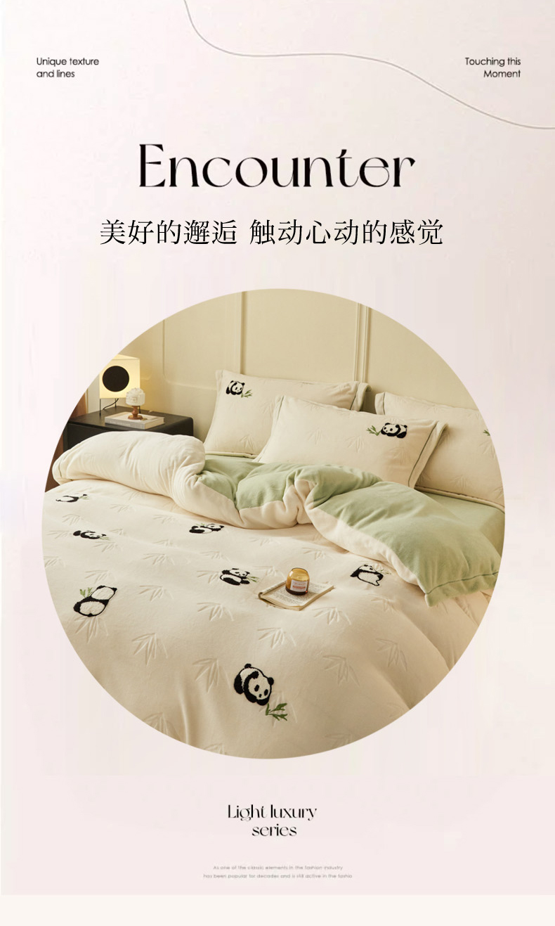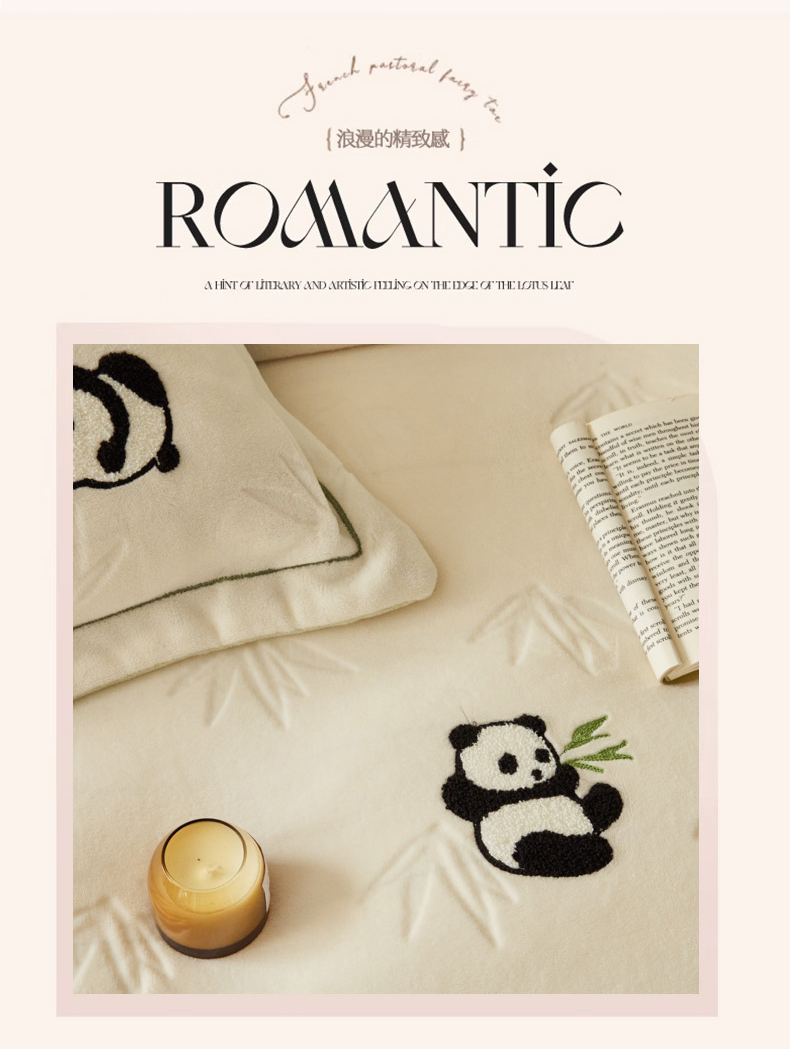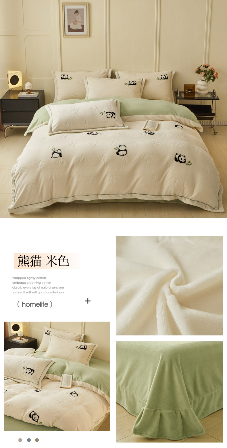 商品名称:恋佳居 2025新款高克重全工艺牛奶绒毛巾绣四件套 熊猫米色