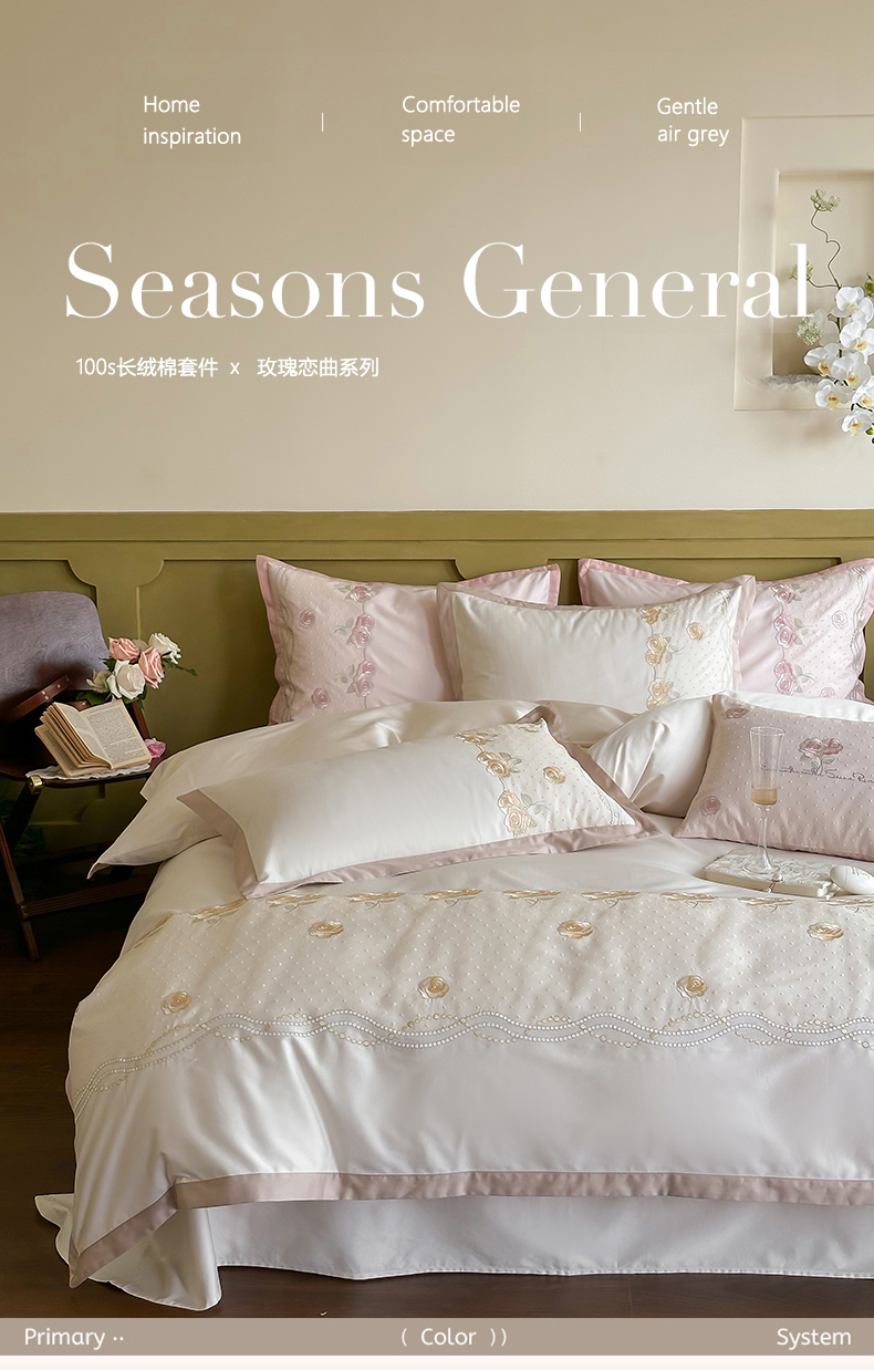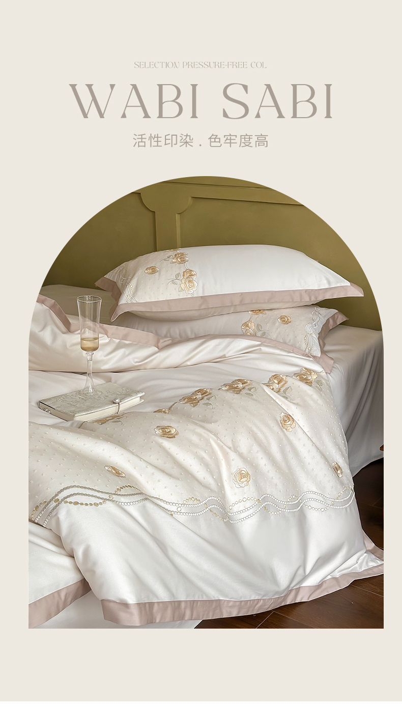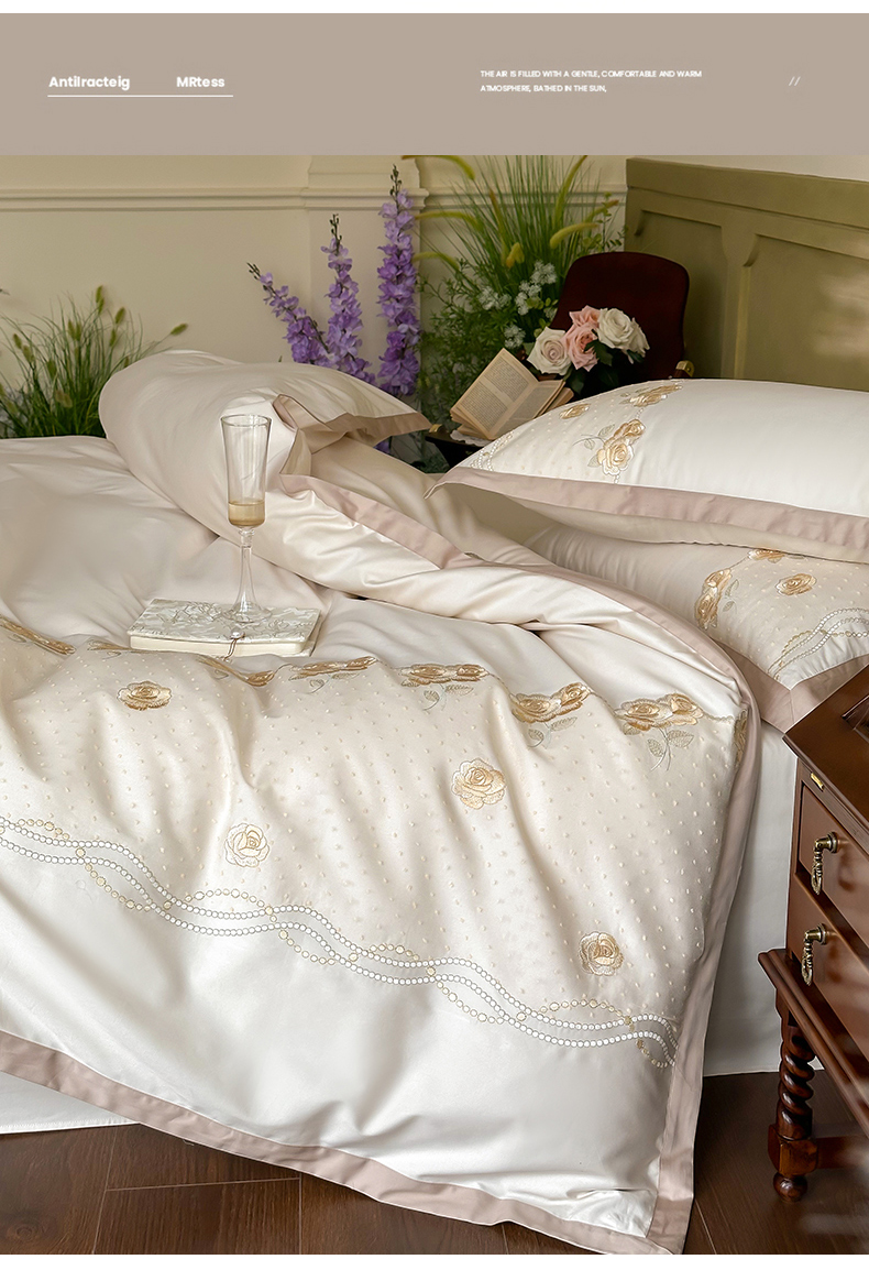 FORTWO家纺原创设计(FOR TWO家纺) 2024新款100s绣花蕾丝长绒棉四件套 玫瑰恋曲-粉
