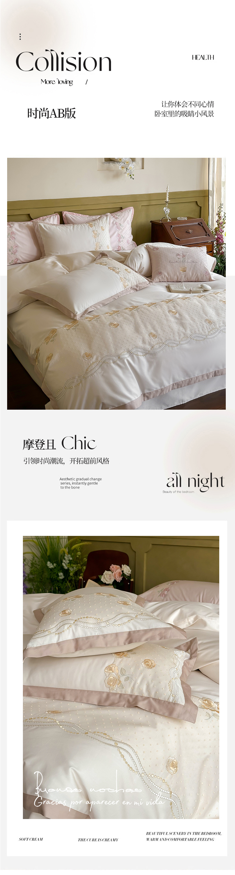 (总)FORTWO家纺原创设计(FOR TWO家纺) 2025新款230克牛奶绒压线绣花款四件套-心动讯号 (券前)基础价不低于中号268元,大号298元 床笠加10元,心动讯号