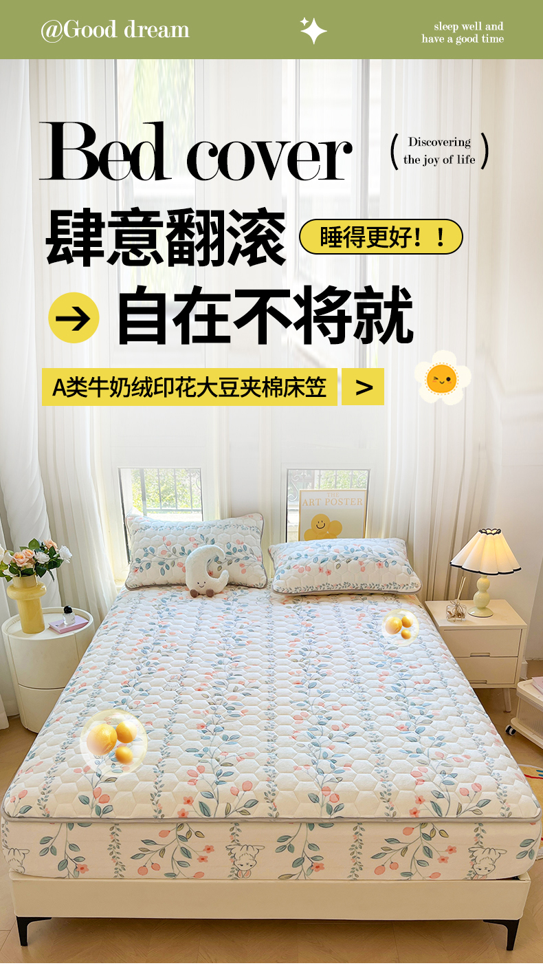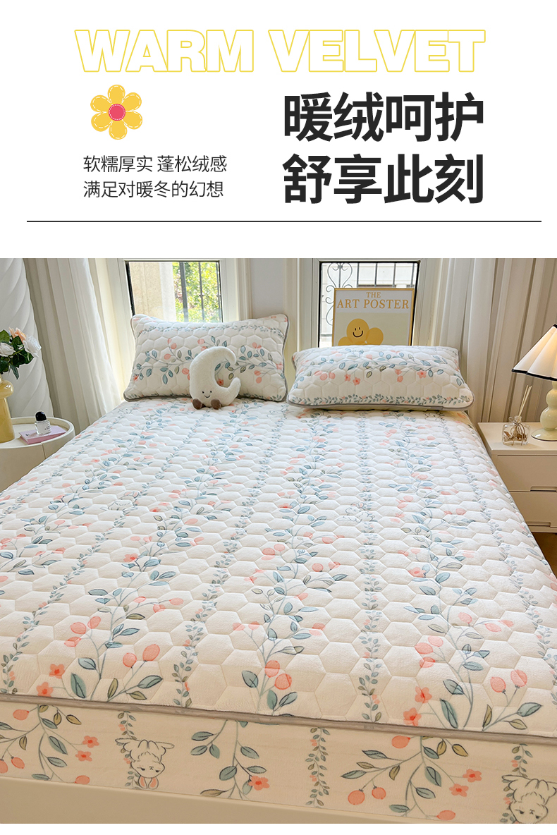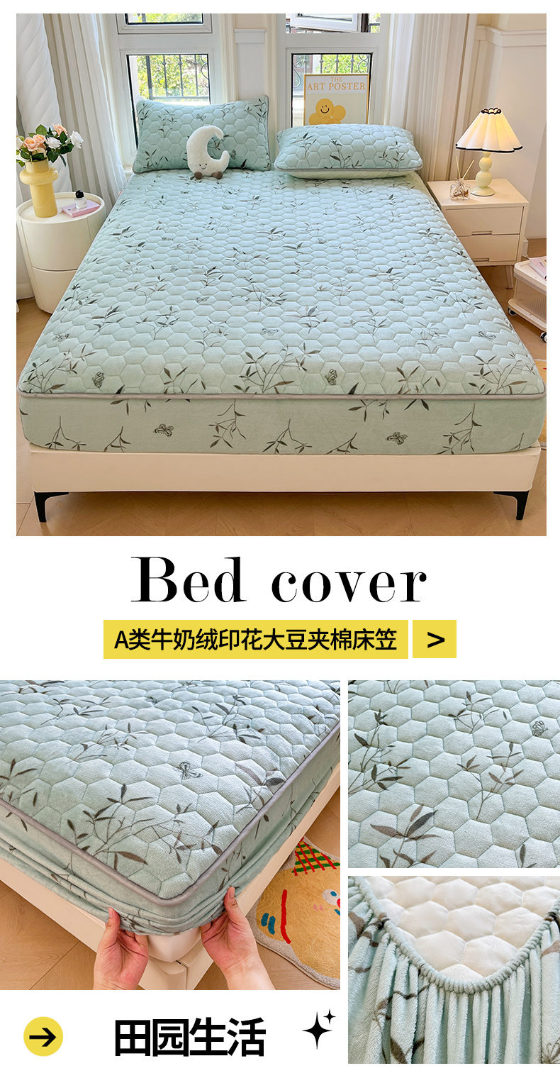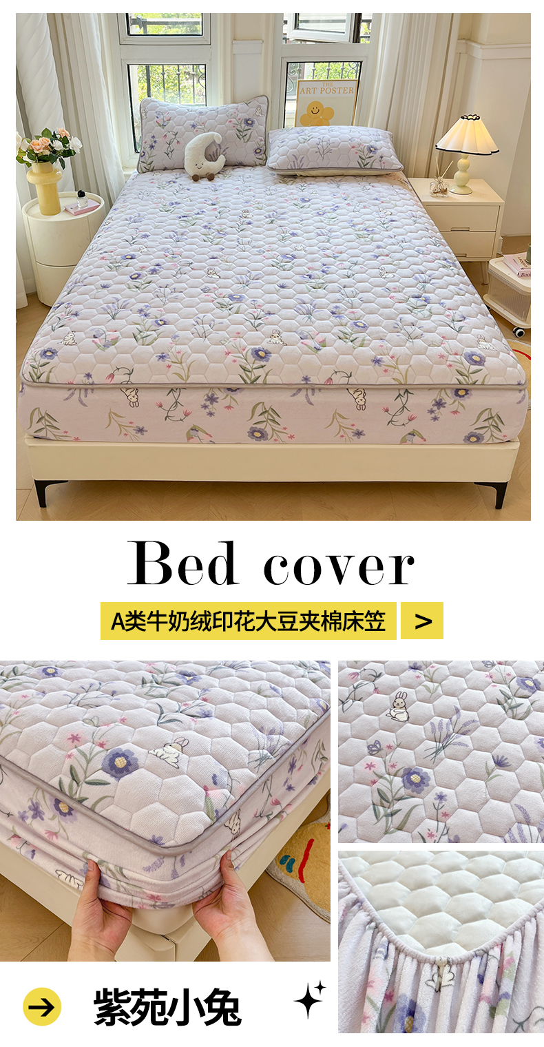商品名称:(总)伊人坊 2024新款牛奶绒印花大豆夹棉床笠