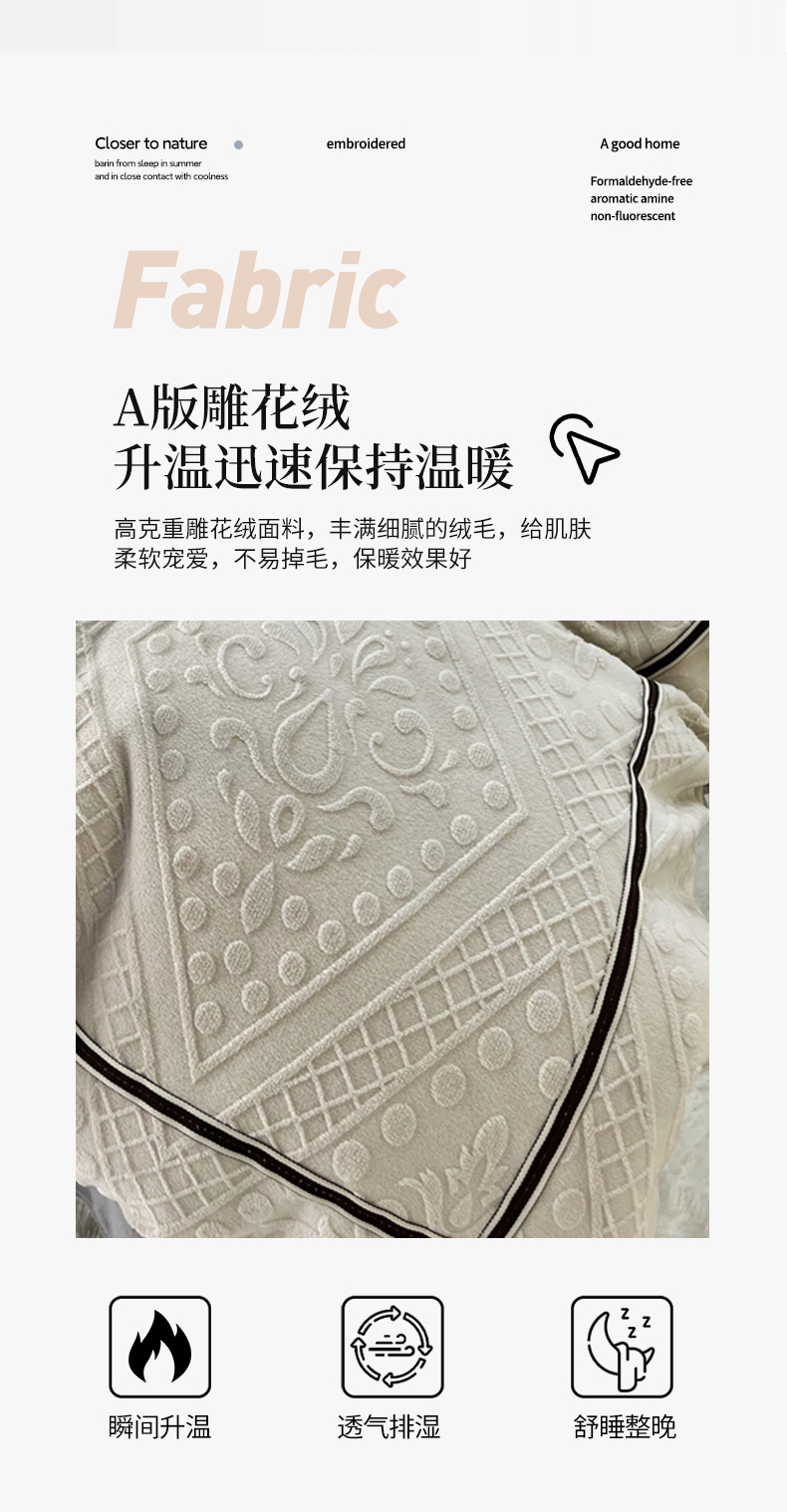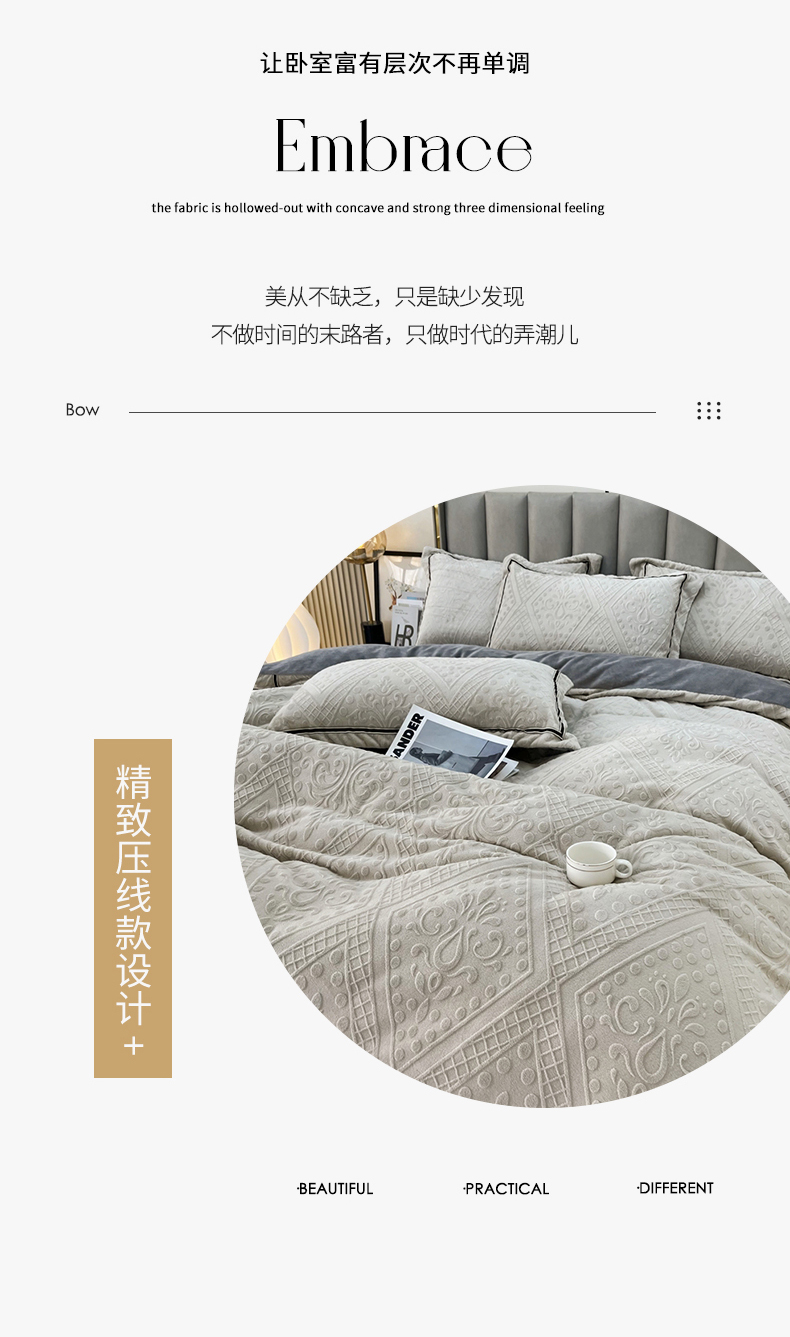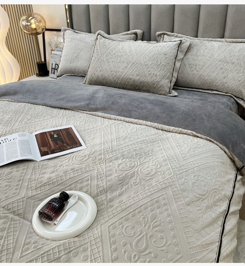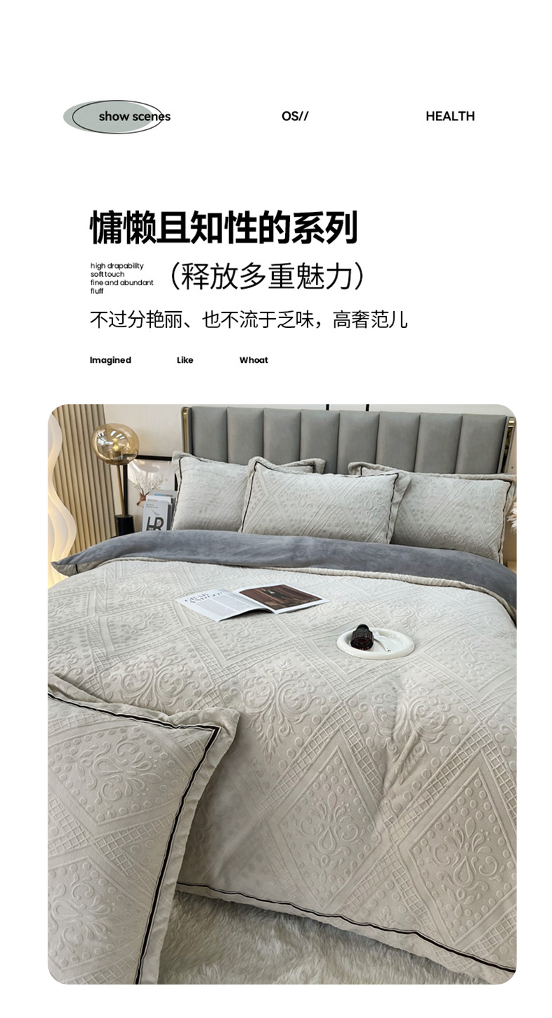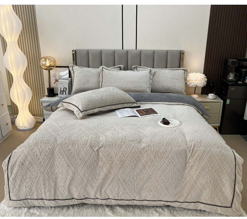 商品名称:鑫利来家纺 2024新款牛奶绒雕花压线款四件套 欧式-柯南灰