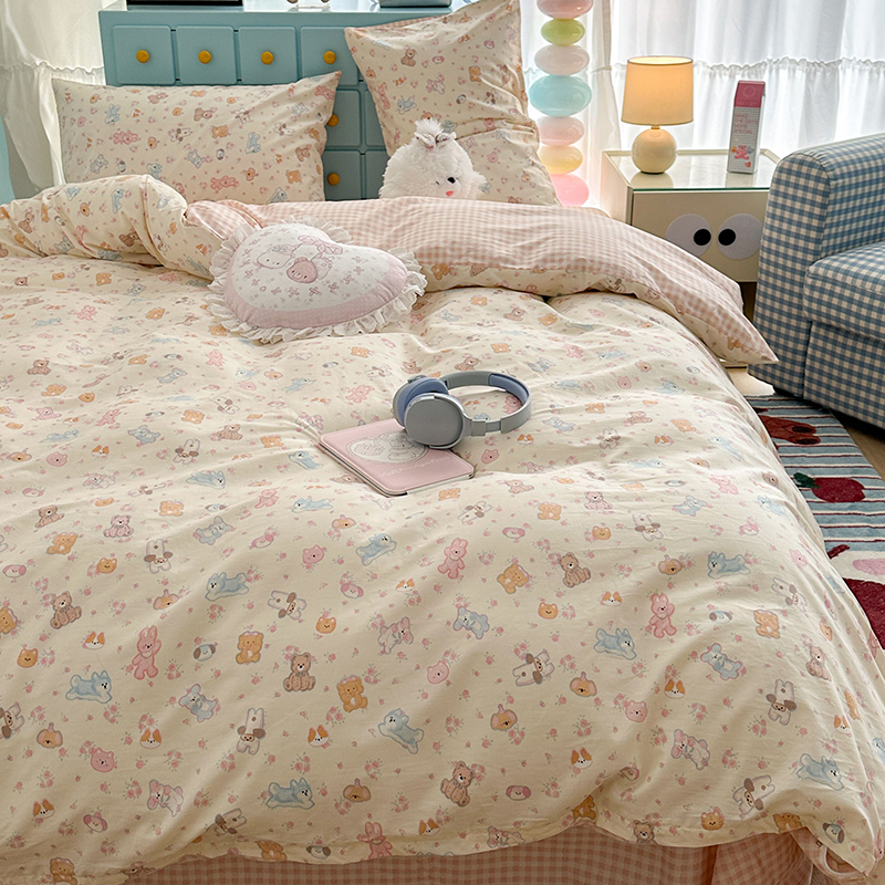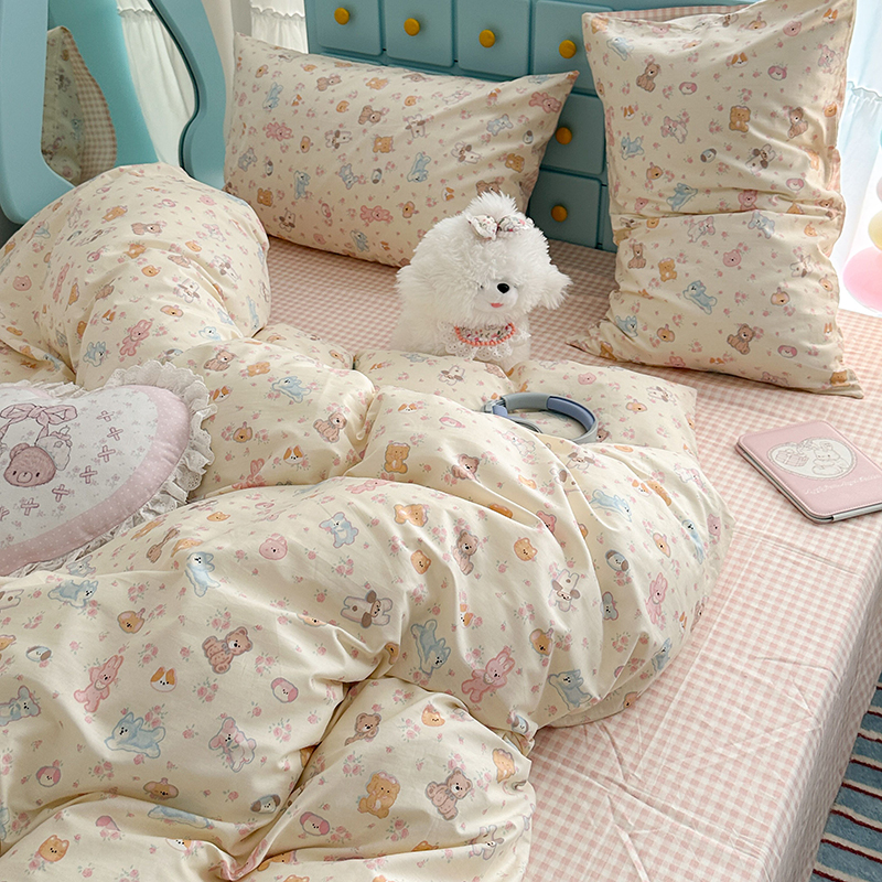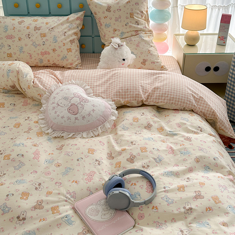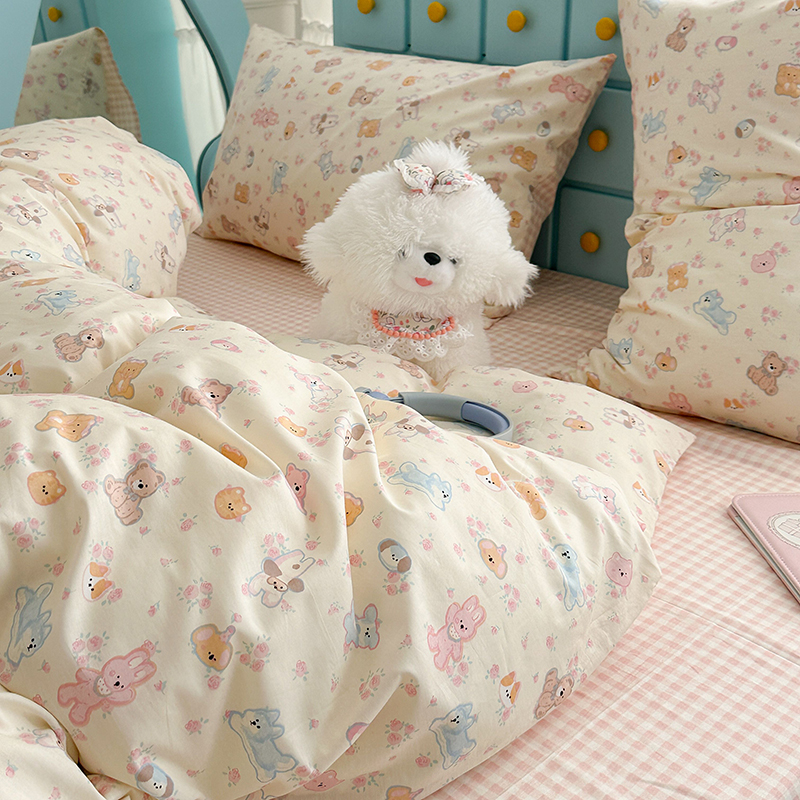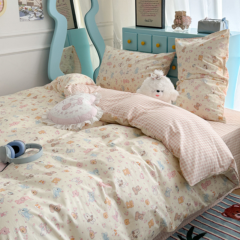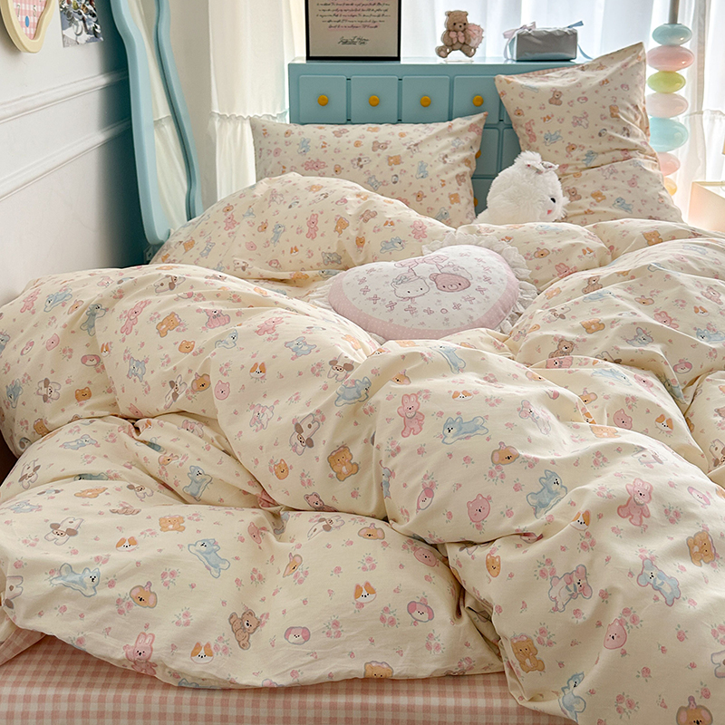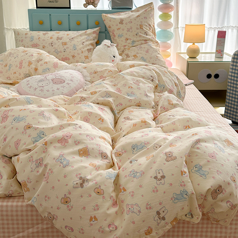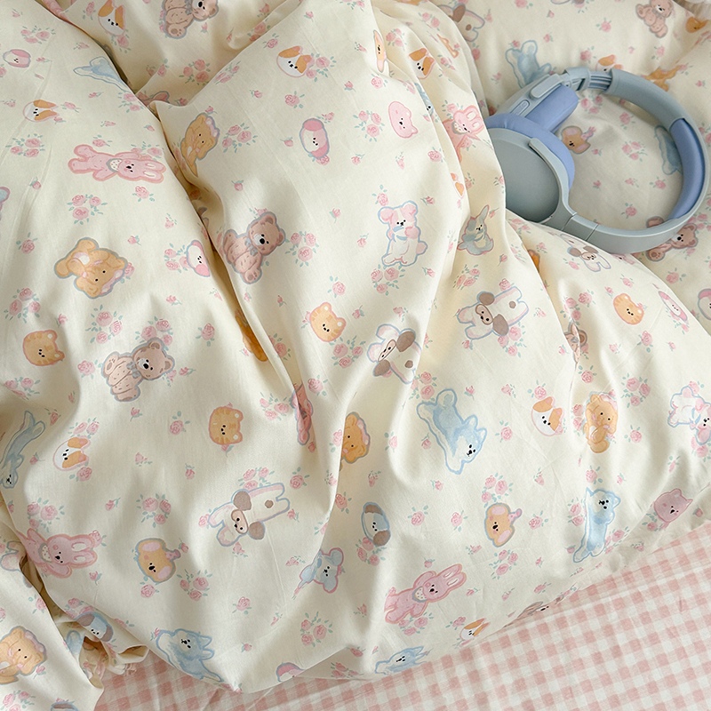 (总)昔可 2023新款学生季卡通普通款四件套,彩色气球熊,彩条恐龙,憨憨熊,花蜜小兔,蘑菇兔,圈圈草莓,蔬菜小兔,郁金香小萌狗