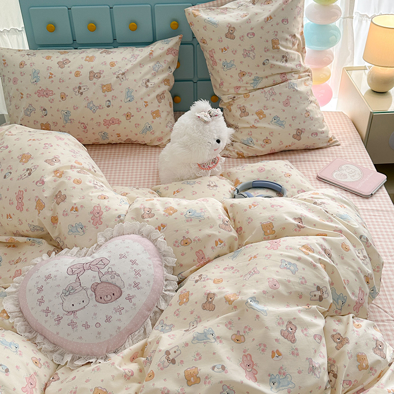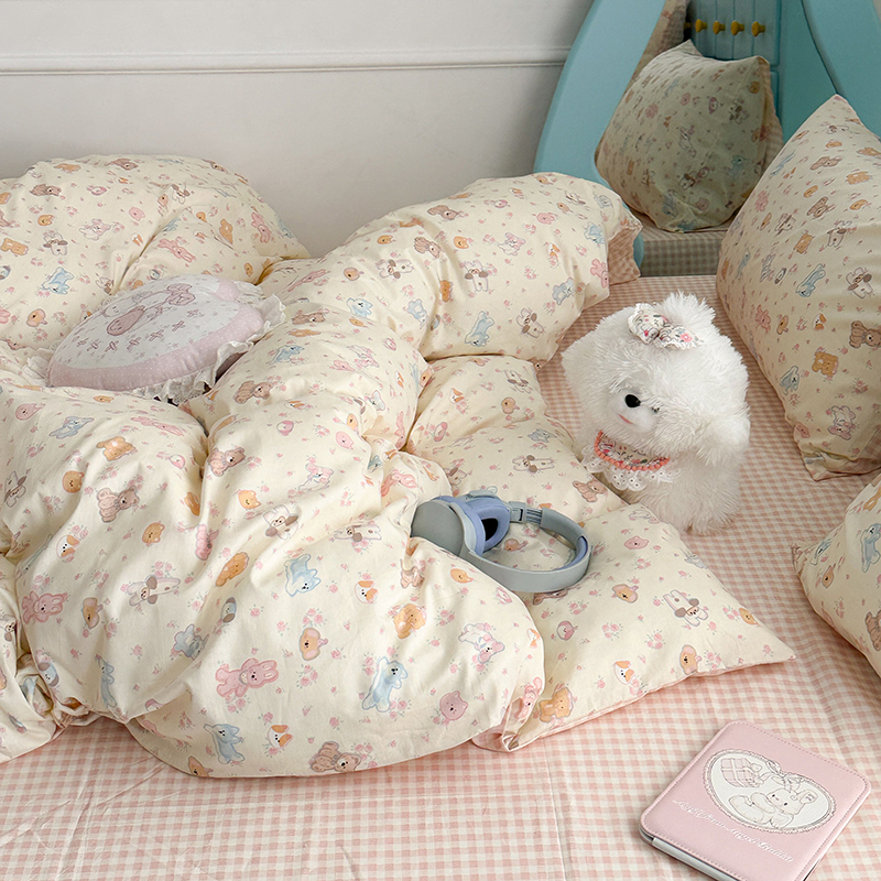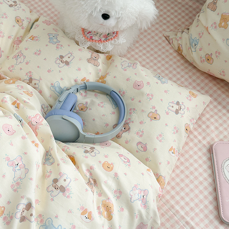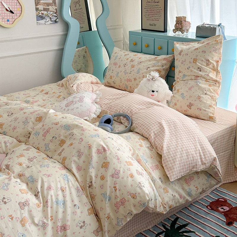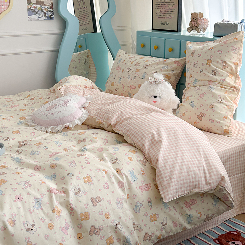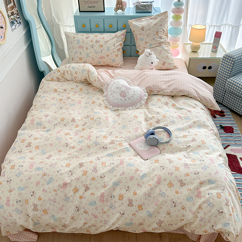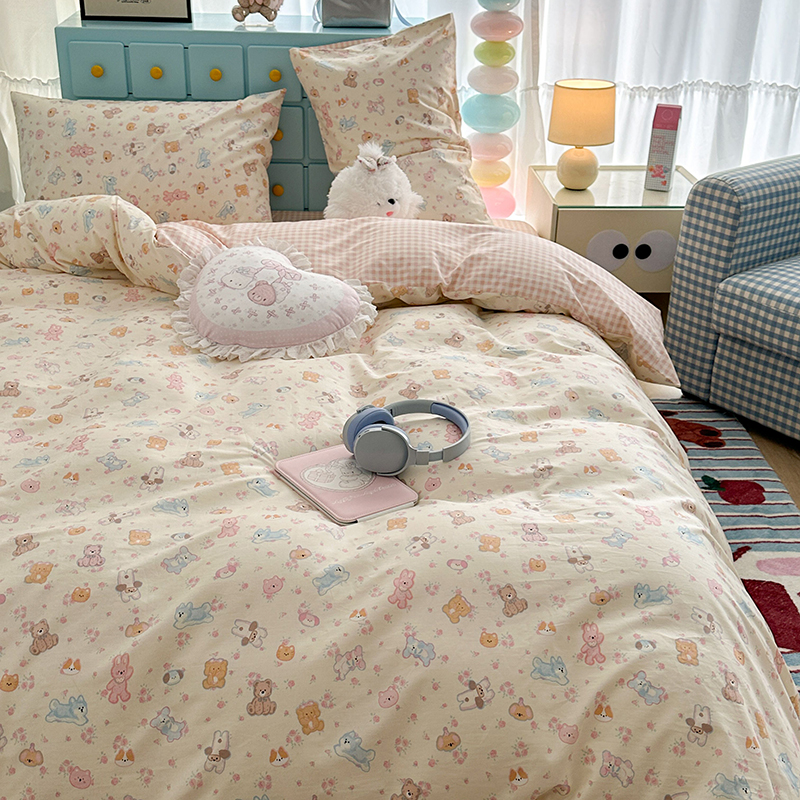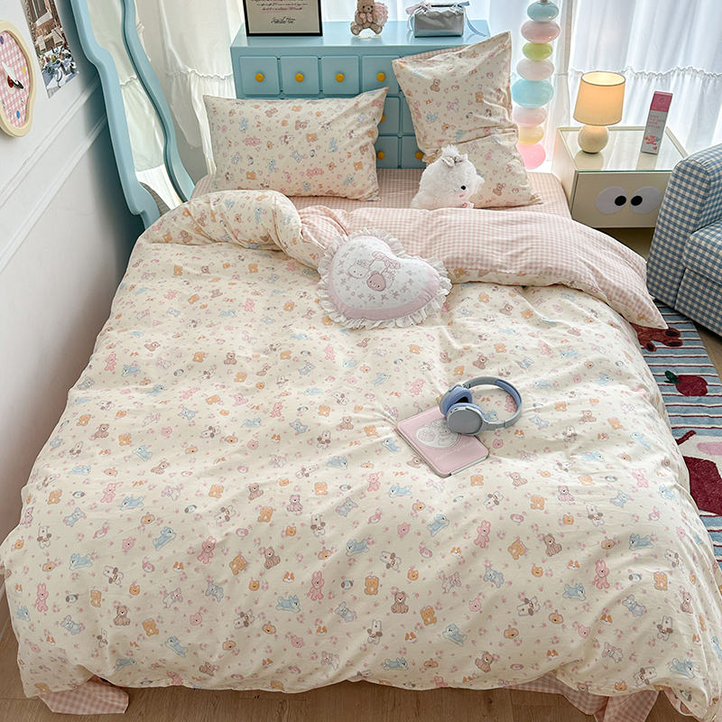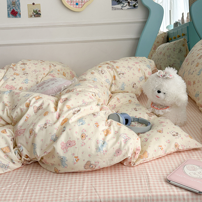 (总)昔可 2023新款学生季卡通普通款四件套,彩色气球熊,彩条恐龙,憨憨熊,花蜜小兔,蘑菇兔,圈圈草莓,蔬菜小兔,郁金香小萌狗