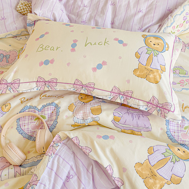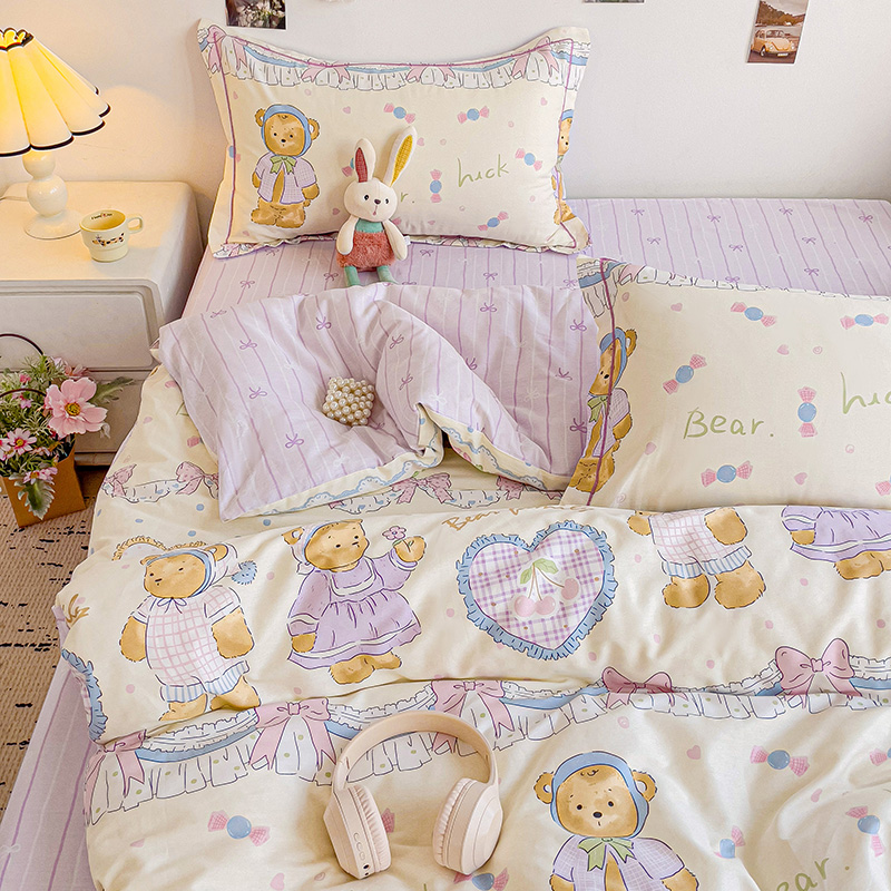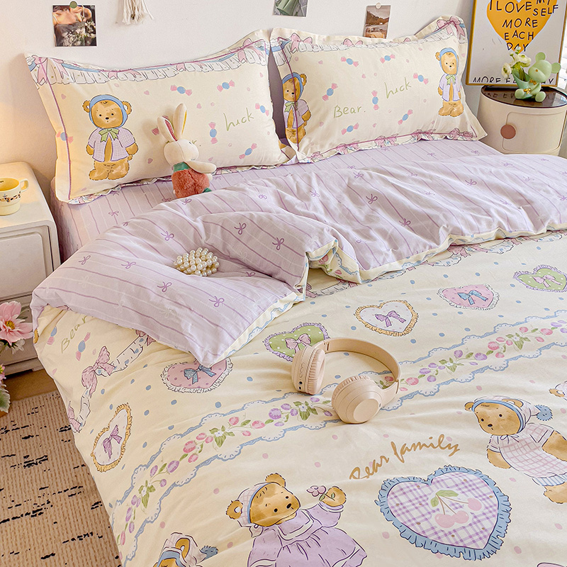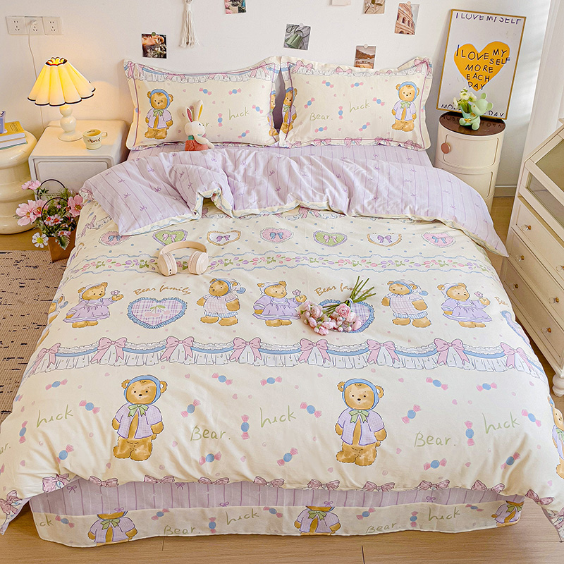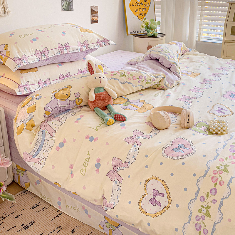 乐童家纺 2024新款直播热款13070纯棉印花吊边款一字绣四件套(十一) 熊熊礼物