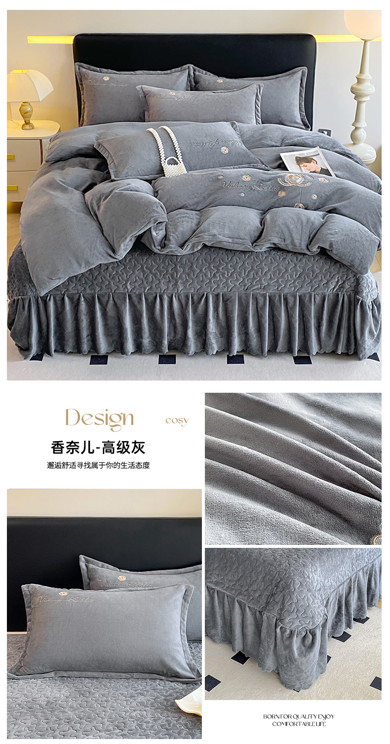 陌乘坊家纺 2024新款牛奶绒床盖款四件套-香奈 香奈-高级灰