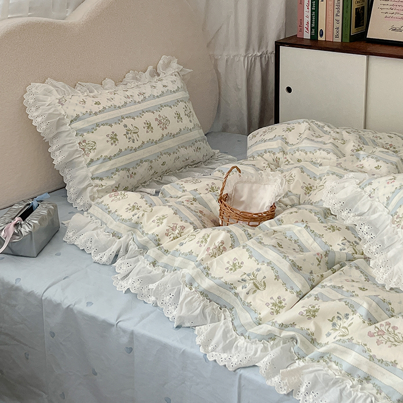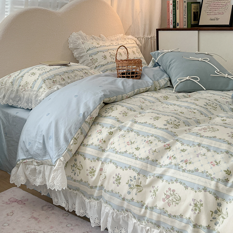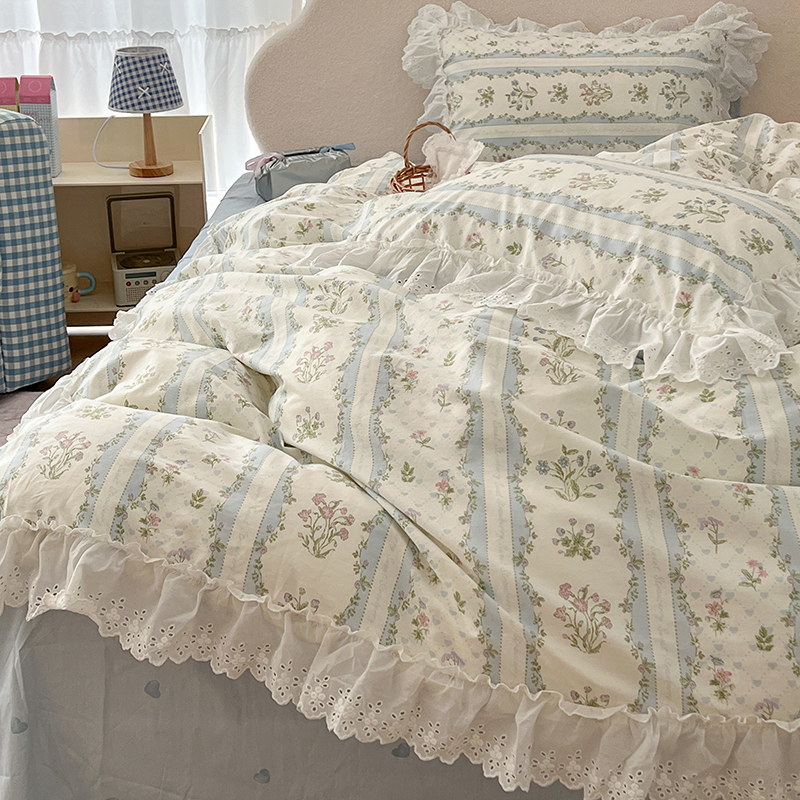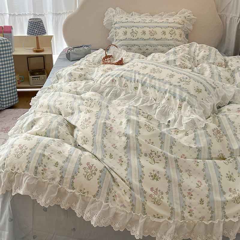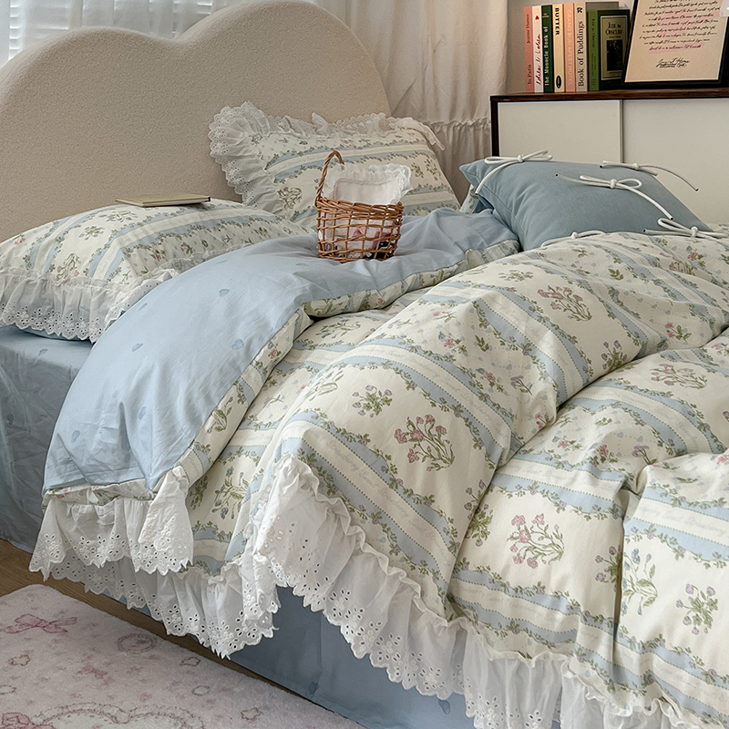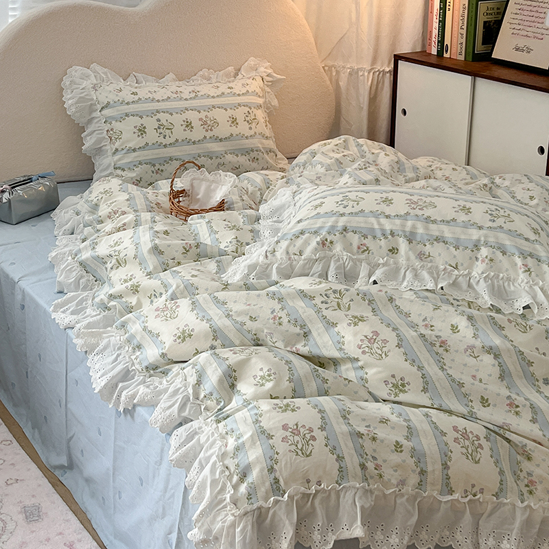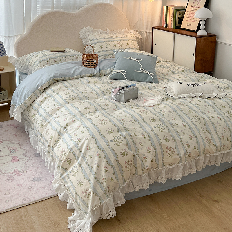 商品名称:昔可家纺 2024新款仙仙蕾丝贴边全棉花边款四件套 仙仙蕾丝花