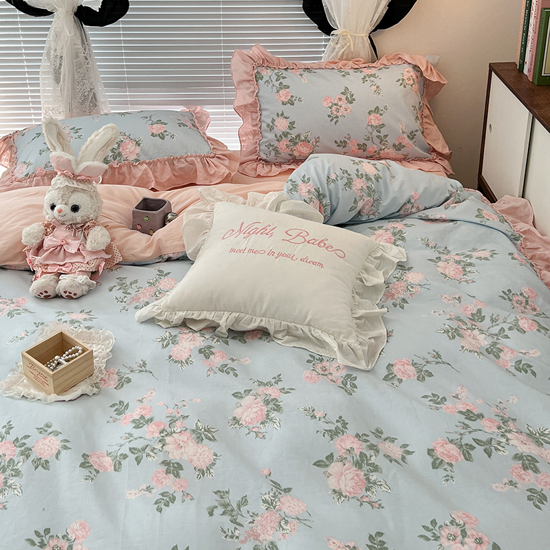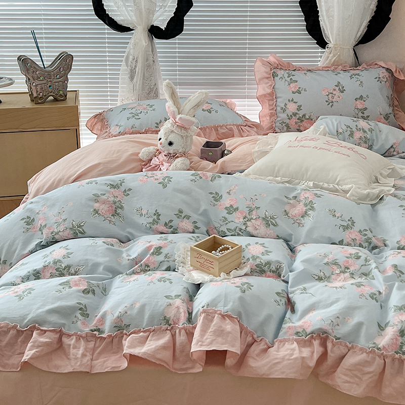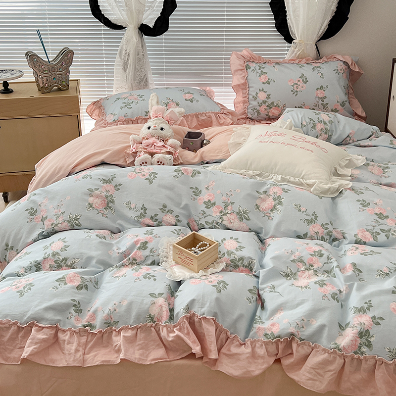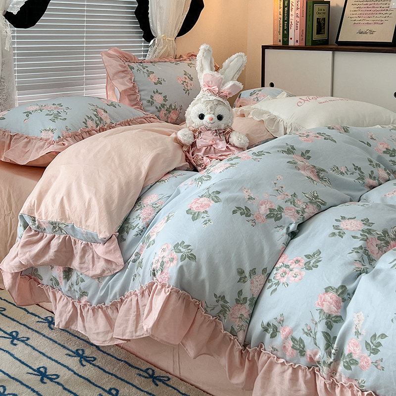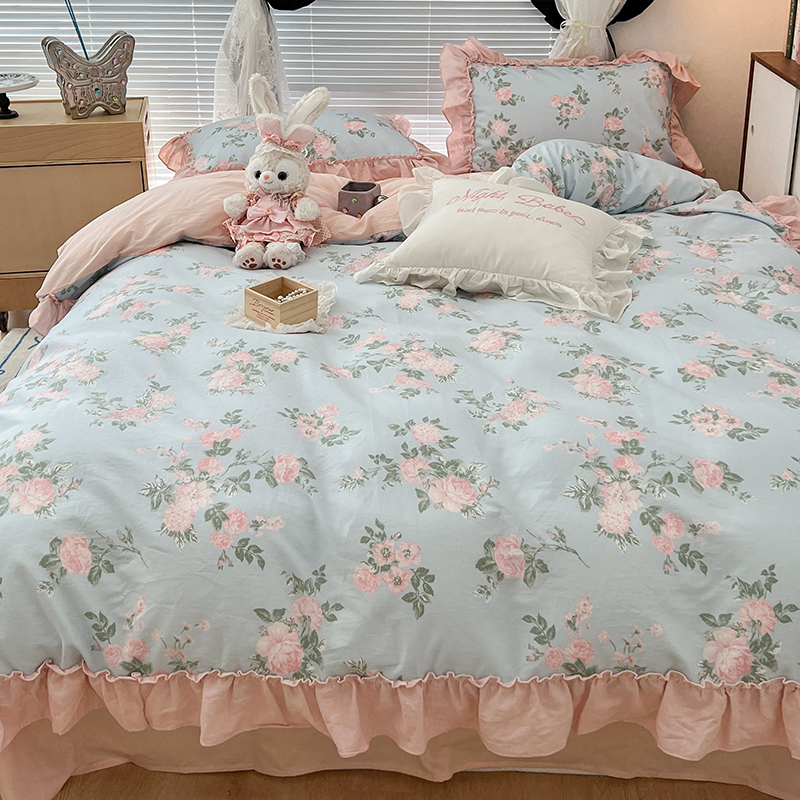 商品名称:昔可家纺 2024新款双层纱贴边全棉四件套 西曼蔷薇