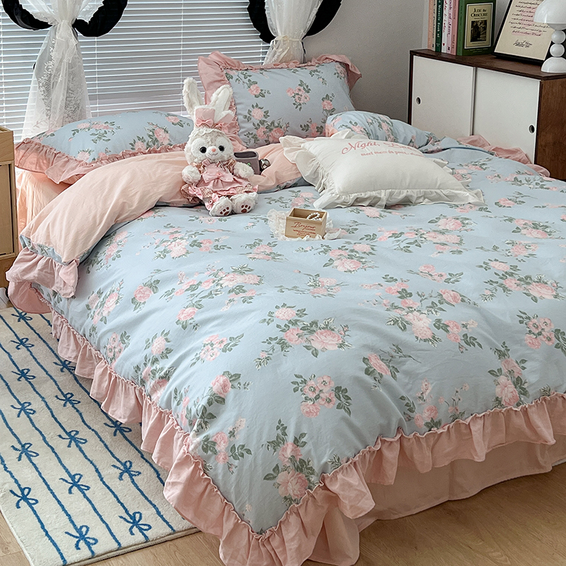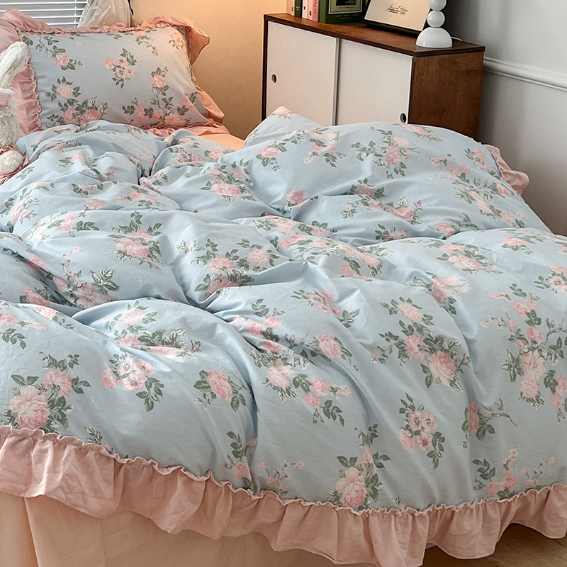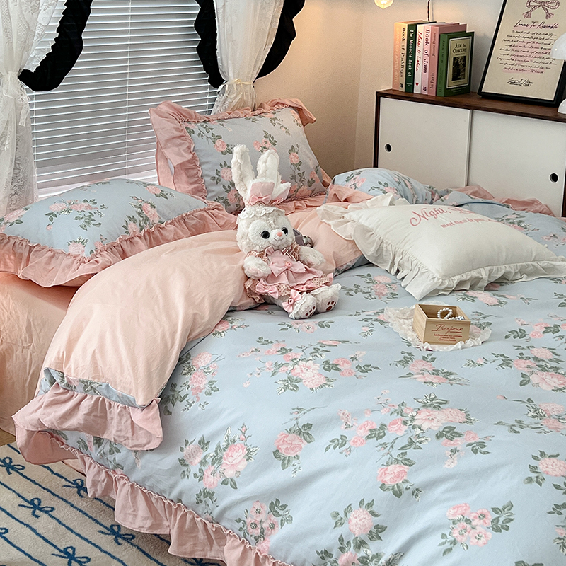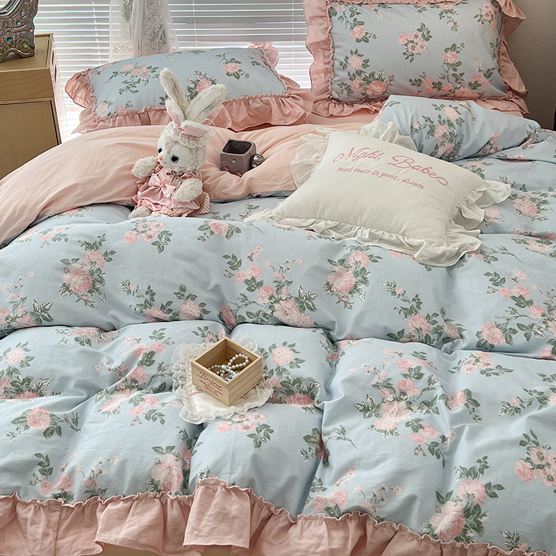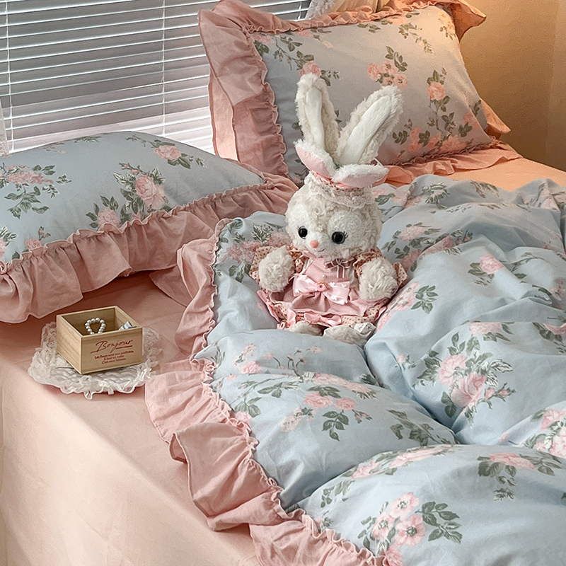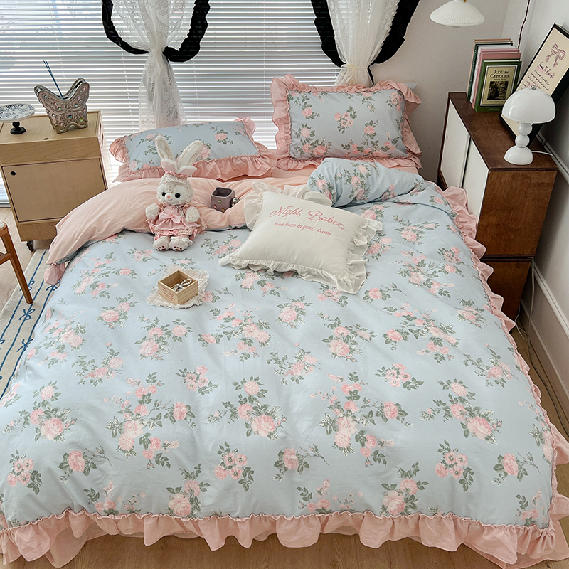 商品名称:昔可家纺 2024新款双层纱贴边全棉四件套 西曼蔷薇