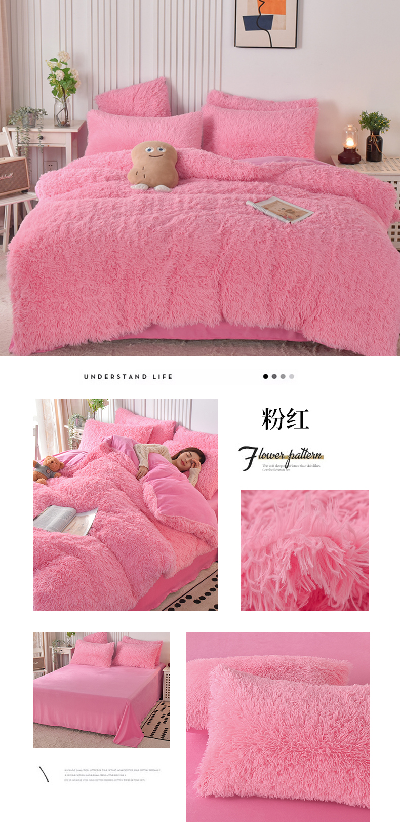 商品名称:鑫喜莱 2024新款长毛绒四件套 粉红
