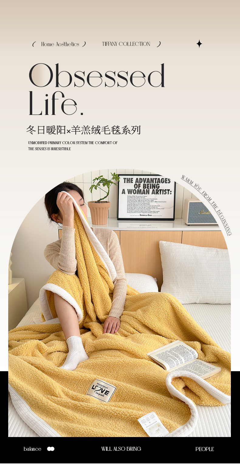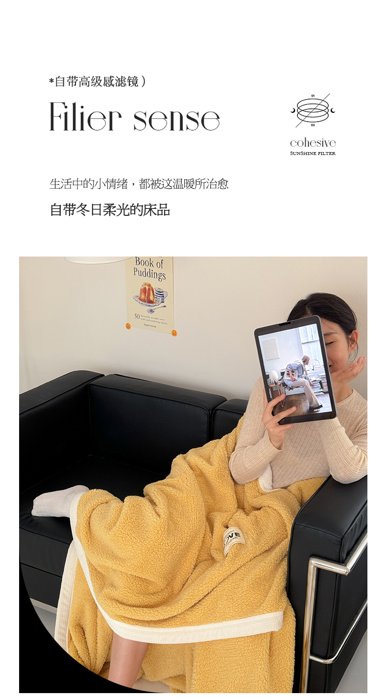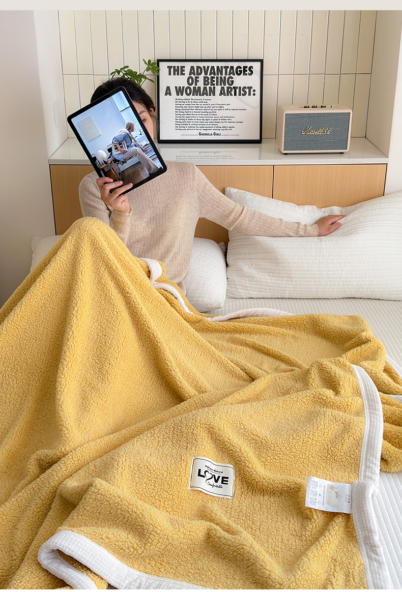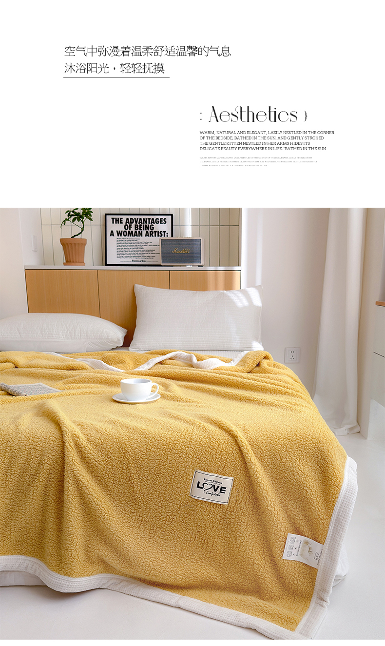 商品名称:沐棉 2024新款羊羔绒泰迪绒毛毯 柠檬黄