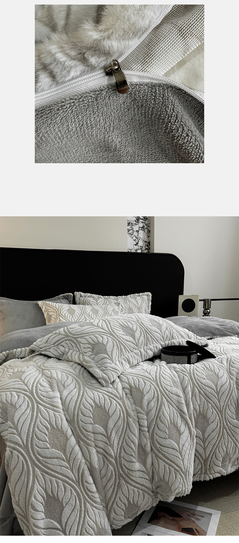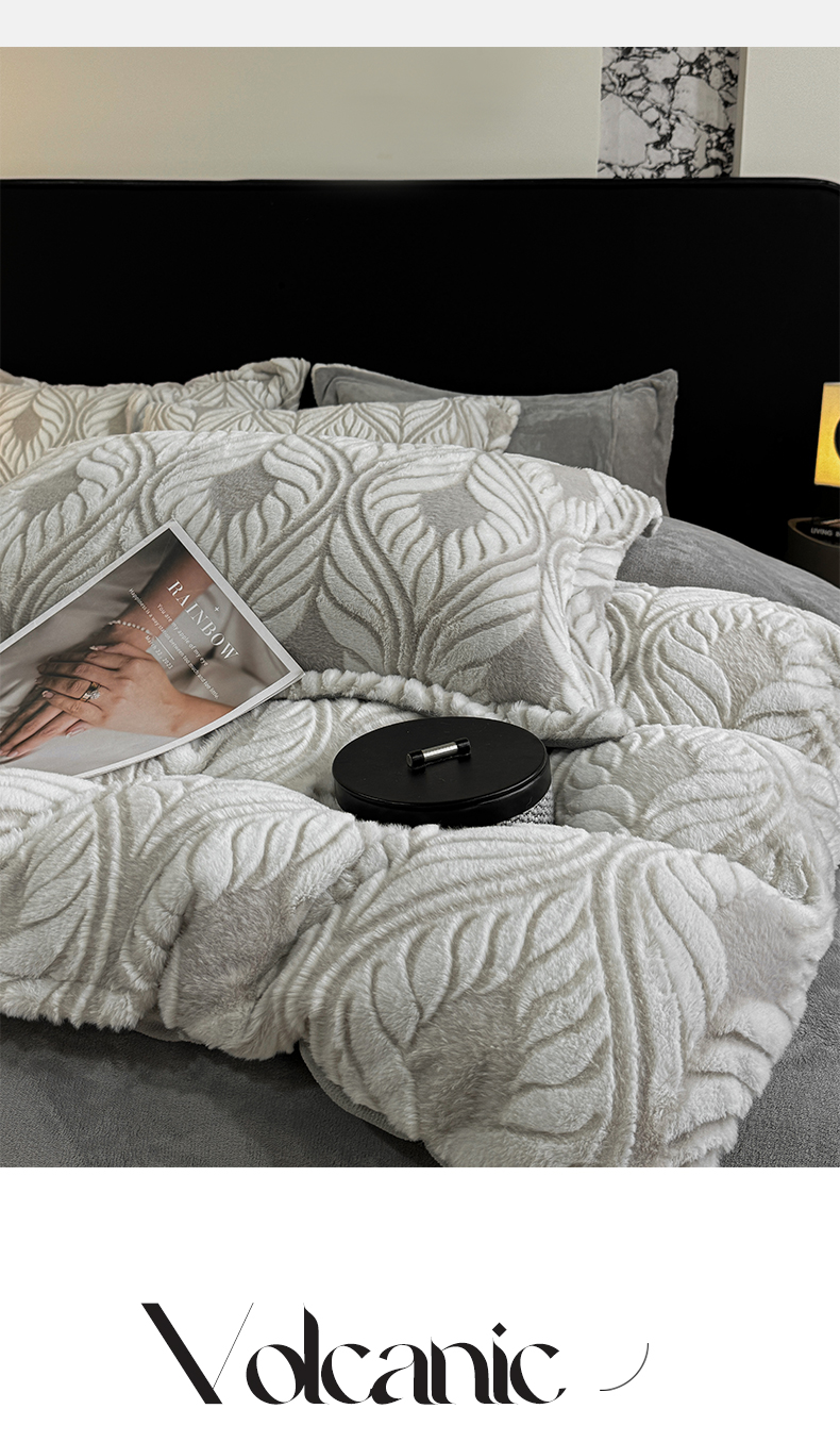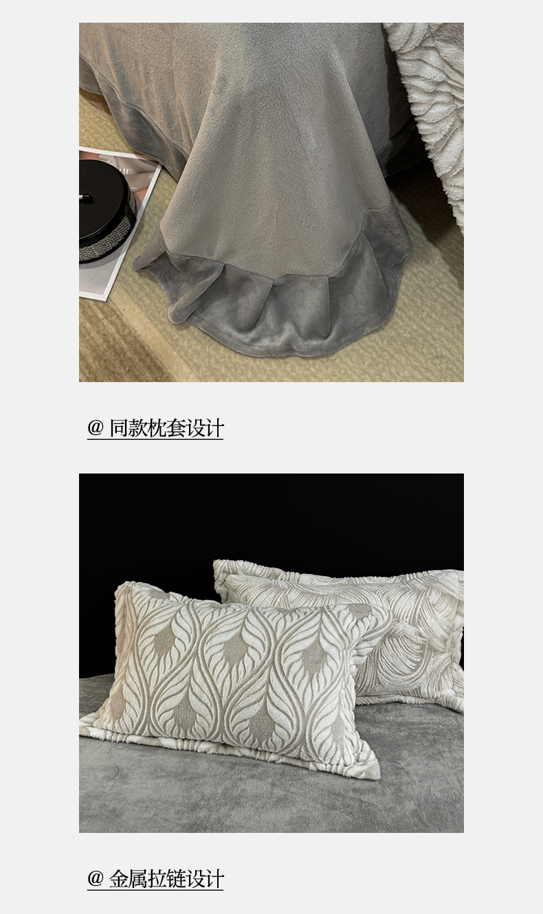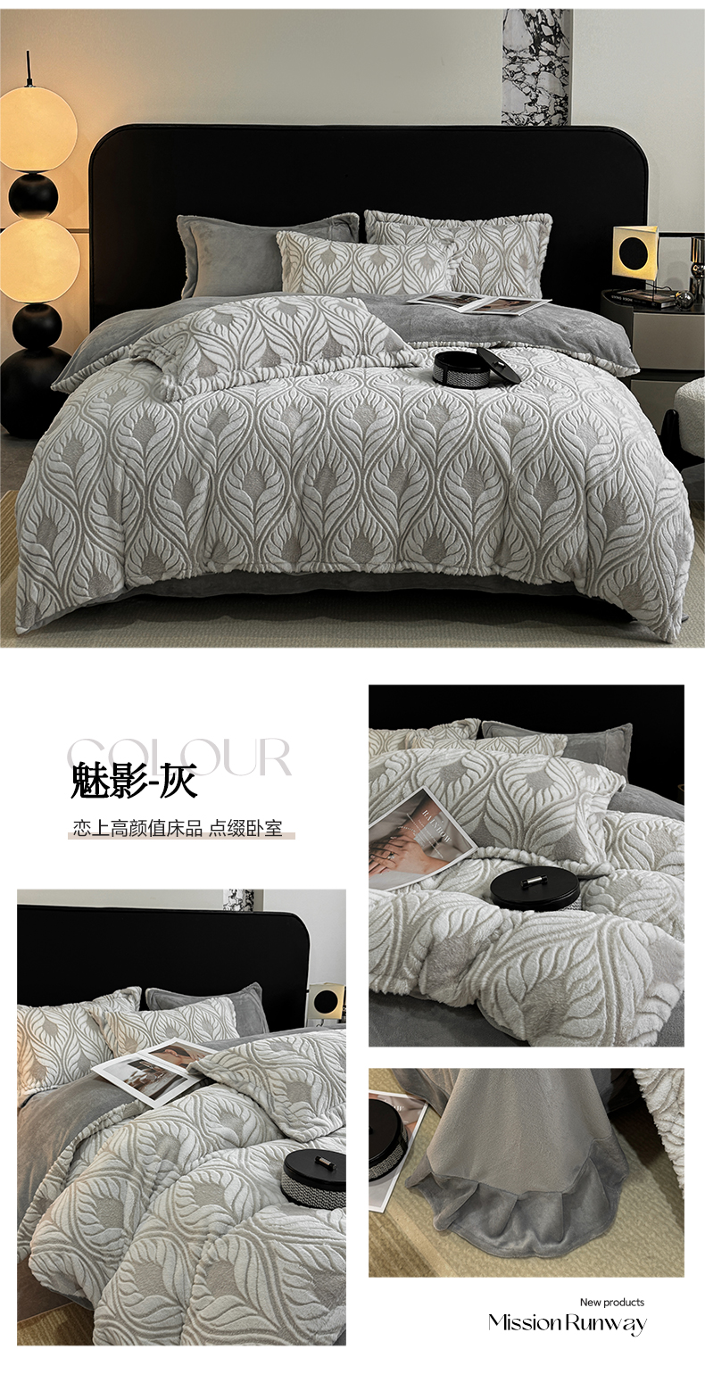 商品名称:帅露家纺 2024新款加厚兔绒雕花保暖四件套【提供买家秀】 魅影-灰