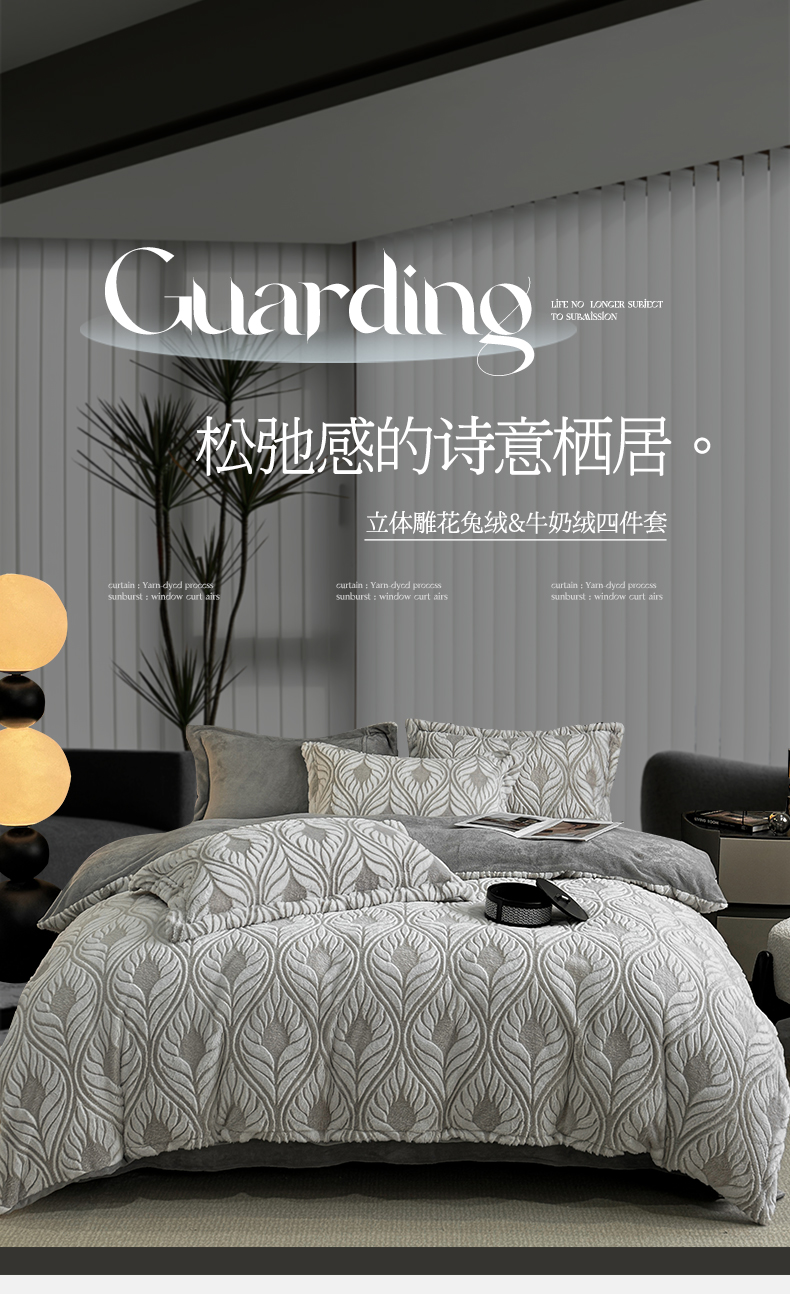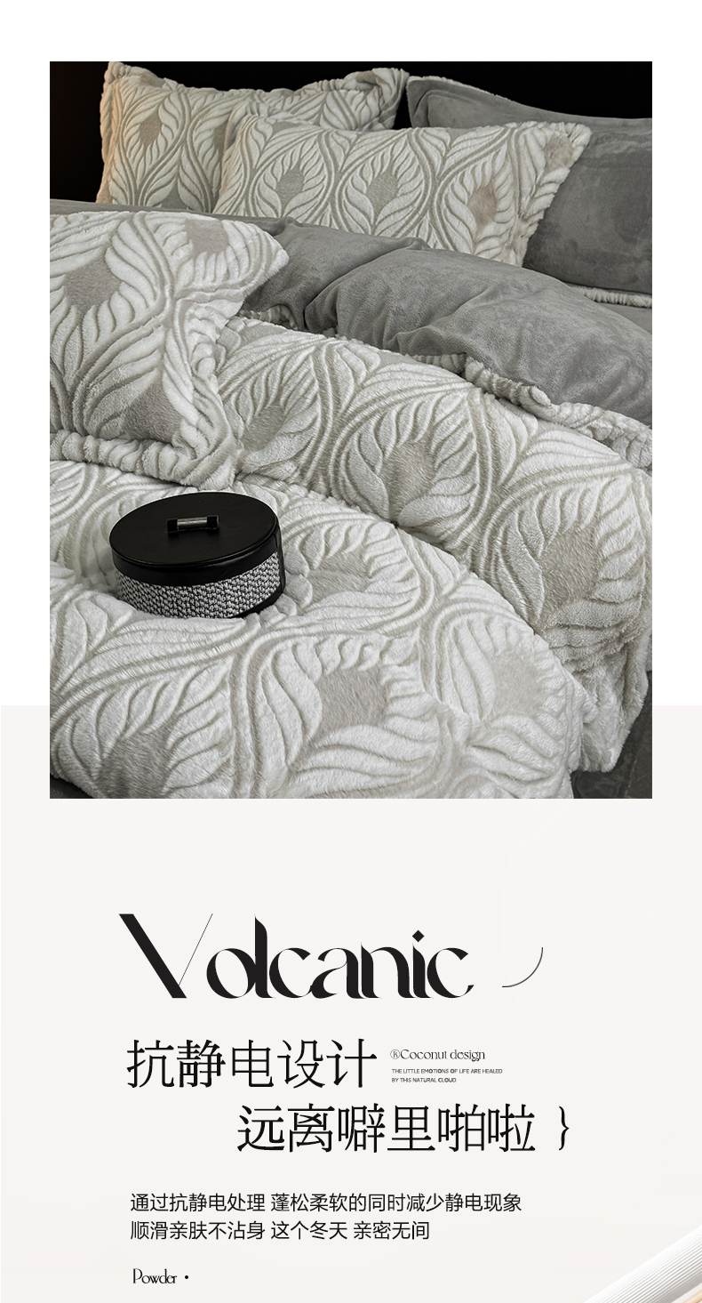 (总)帅露家纺 2025秋冬新款A类高克重着色烂花立体雕花牛奶绒纽扣款四件套,暗香,蝶栖,浮光-灰,浮光-卡其,芒星-紫,芒星-棕,雾棱-卡其,雾棱-蓝,弦裂,叶络