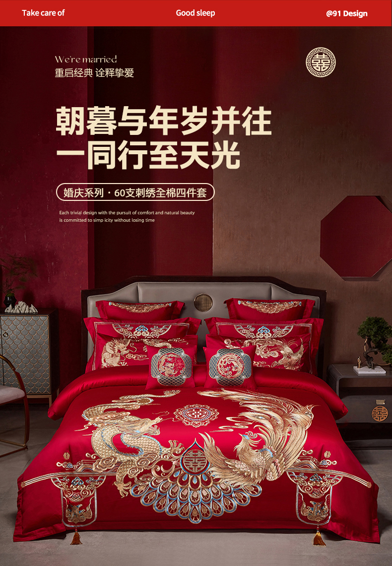 当前位置: 91家纺网 > 商品网购 > 床品套件 > 四件套 > 婚庆四件套 > 用心 2025新款婚庆全棉刺绣四件套多件套系列 皇家龙凤