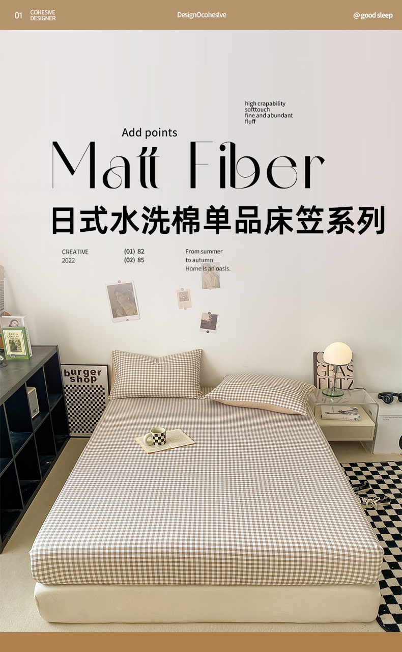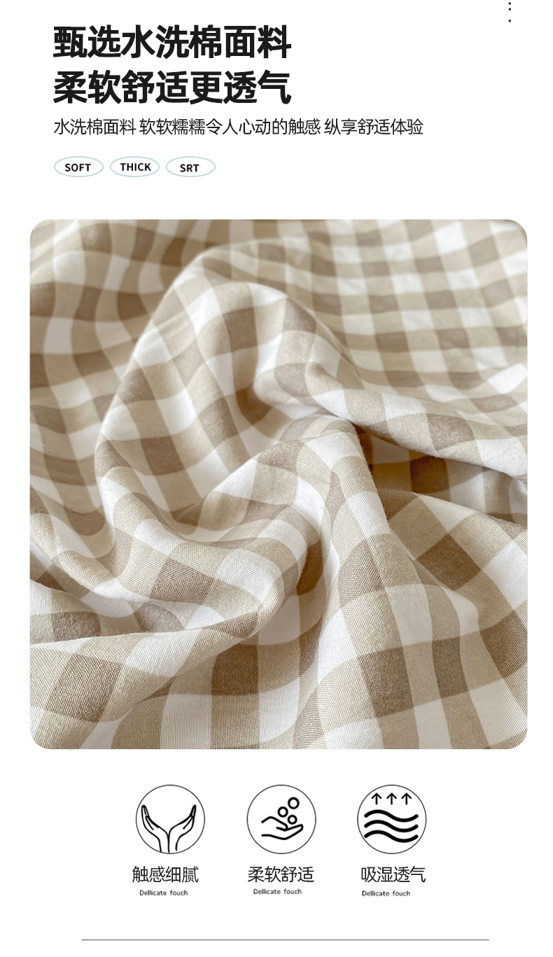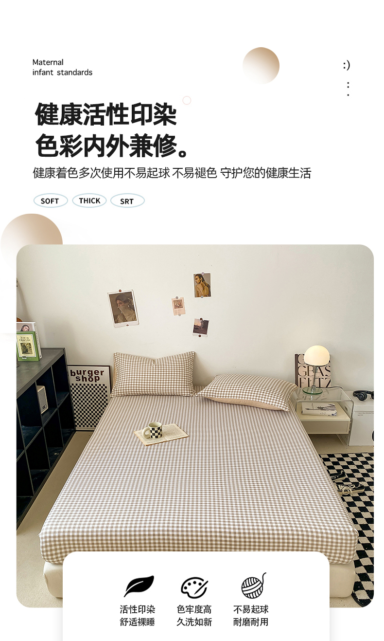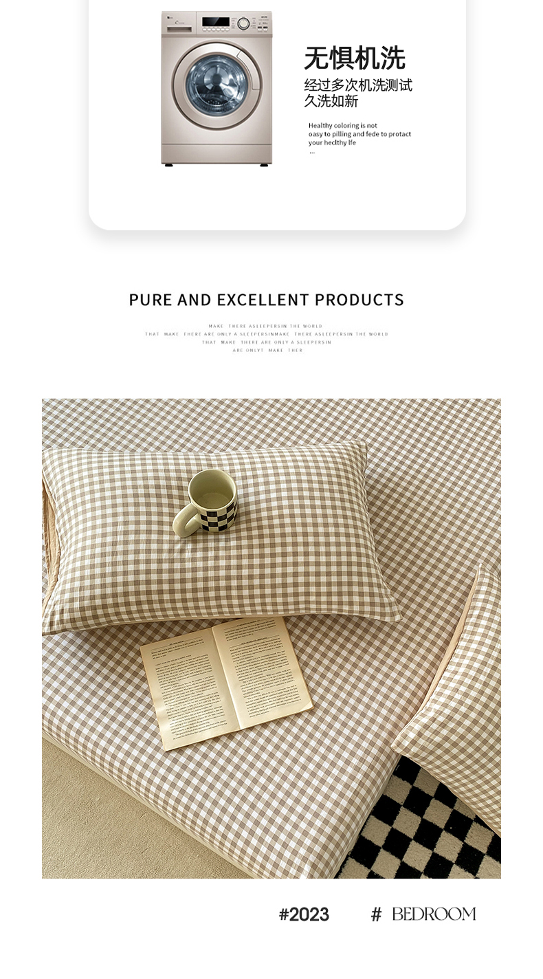 商品名称:悦织湾家纺 2025新款日式简约格子水洗棉单品床笠系列 布丁咖