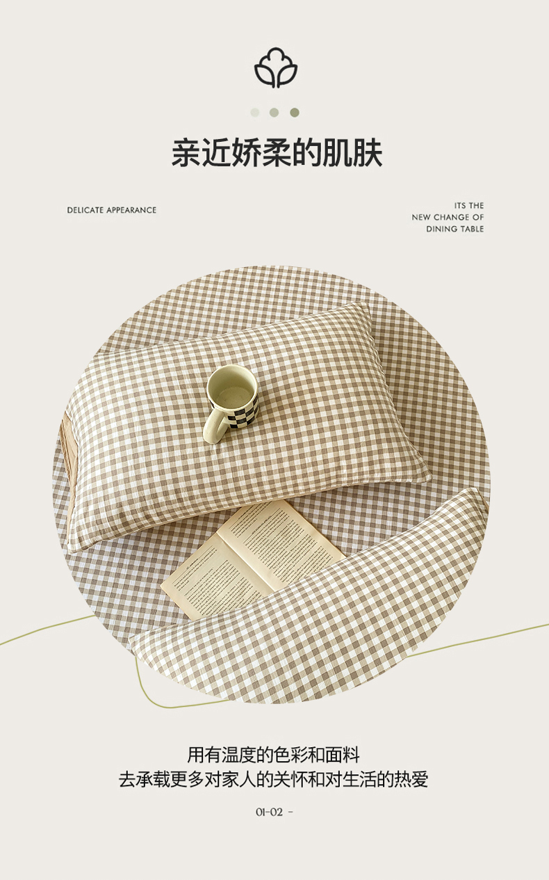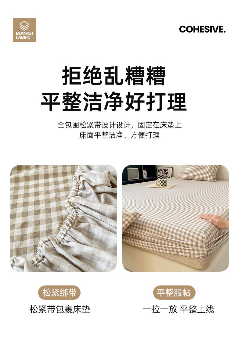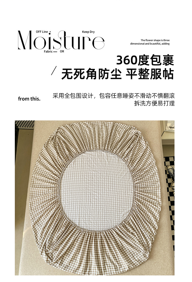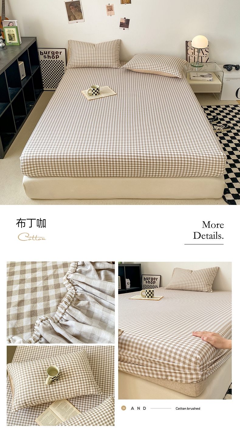 悦织湾家纺 2025新款日式简约格子水洗棉单品床笠系列 布丁咖