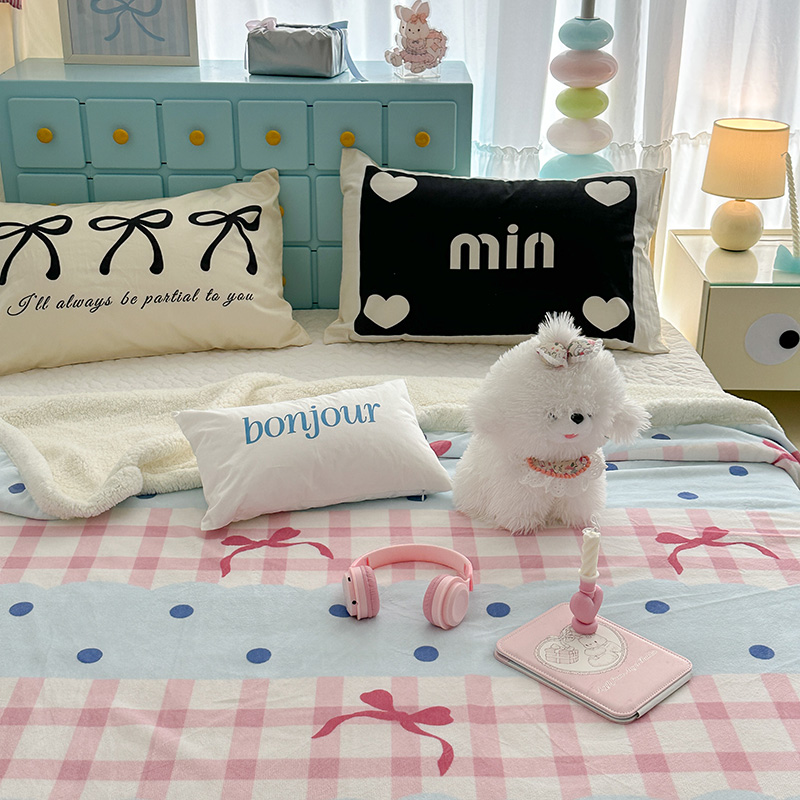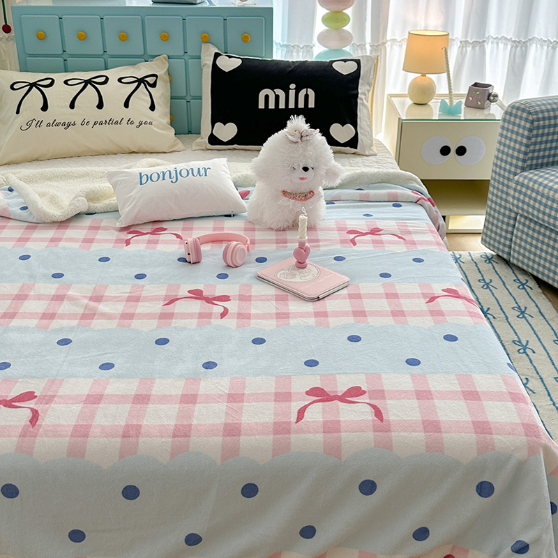 (总)昔可家纺 2024新款印花牛奶绒四件套系列-ins少女系列,芭蕾蛋糕,芭蕾美学,粉格蝴蝶结,黑粉芭蕾蝴蝶结,蓝格蝴蝶结,樱桃奶油蛋糕