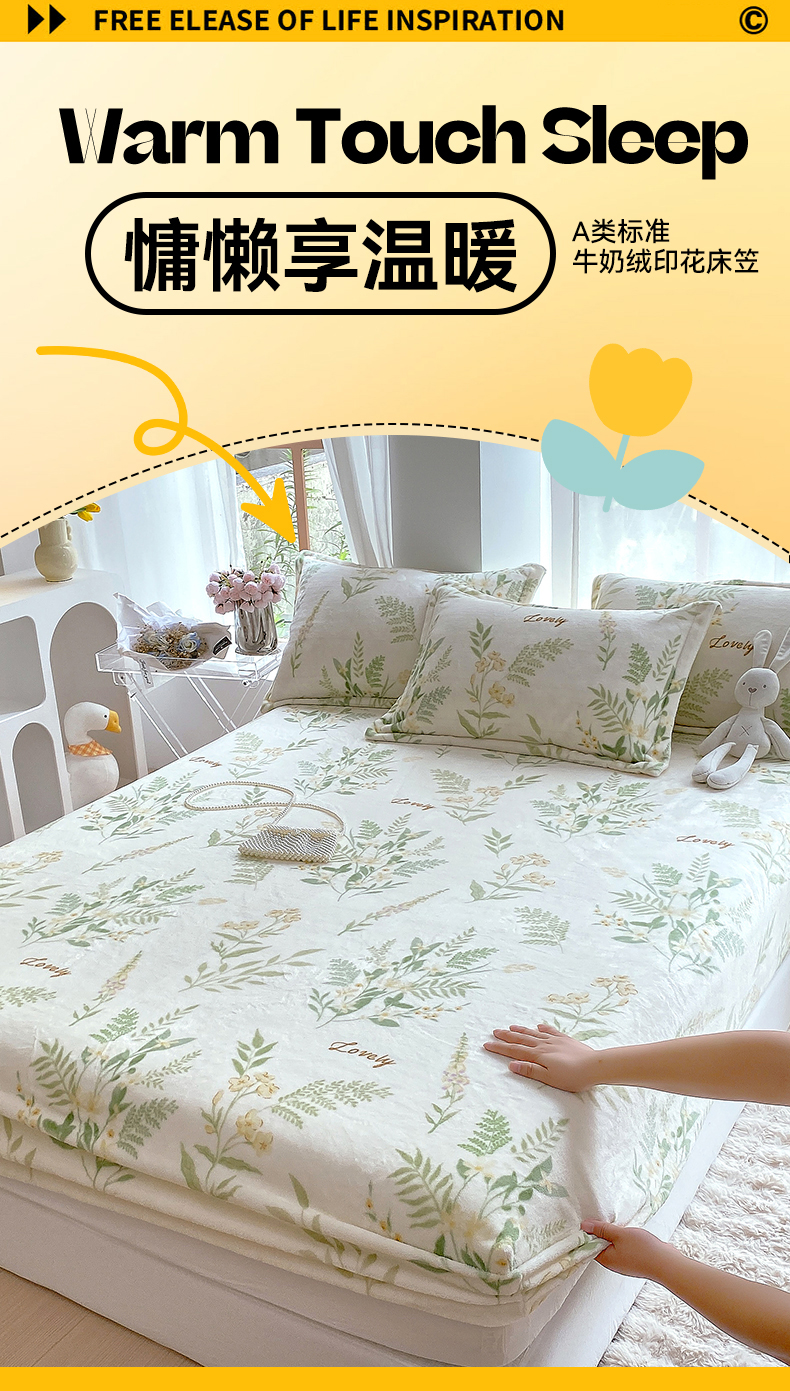 凯儿家纺 2024新款加厚高克重印花系列单床笠 花叶漫舞