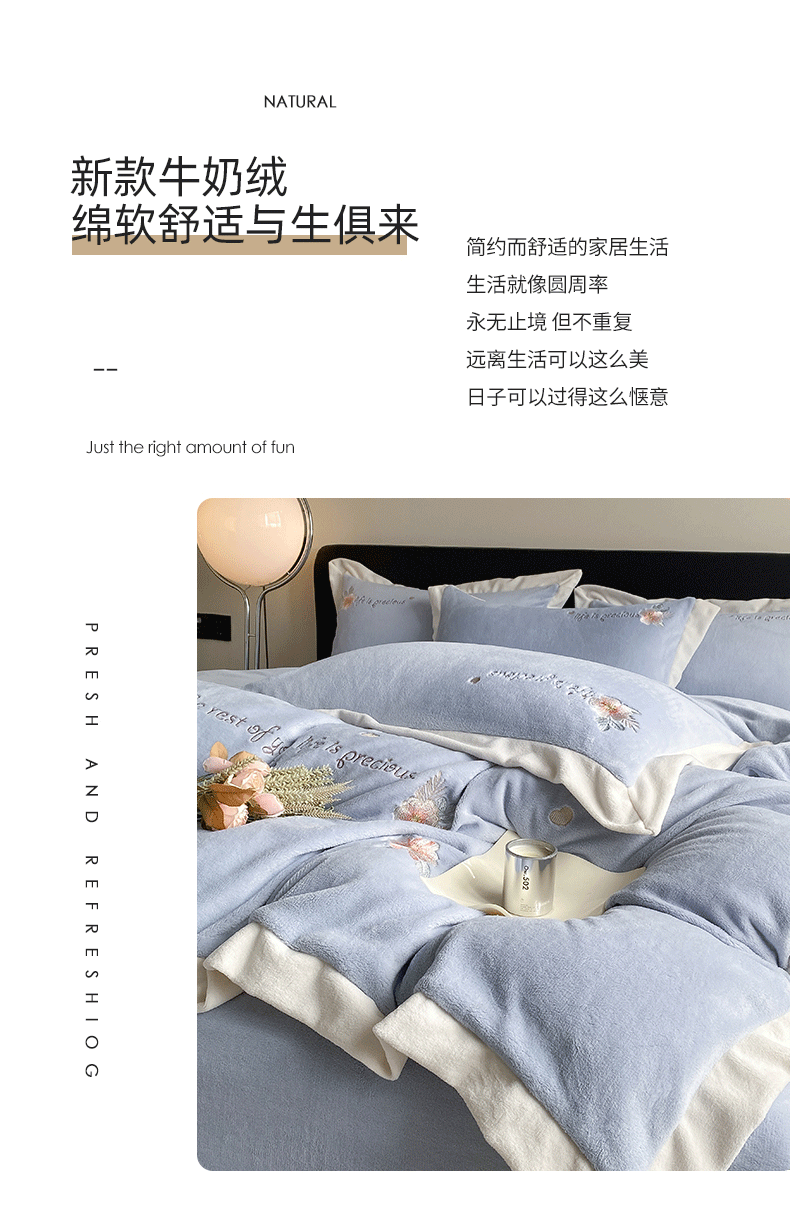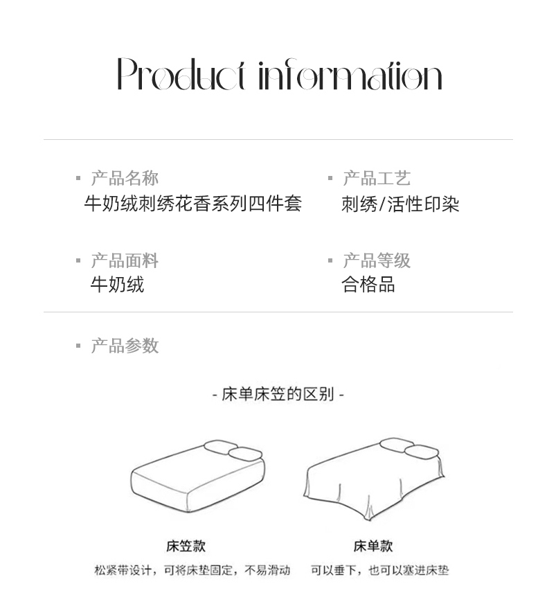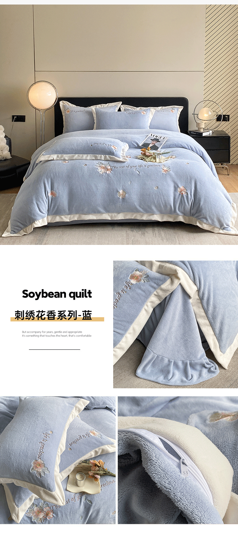 商品名称:七七家纺 2025新款牛奶绒刺绣花香系列四件套 花香-蓝