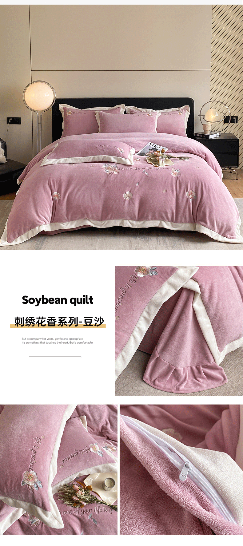 (总)七七家纺 2025新款刺绣款牛奶绒四件套-织梦系列,织梦-粉,织梦-豆沙,织梦-黄,织梦-水绿,织梦-天蓝,织梦-紫
