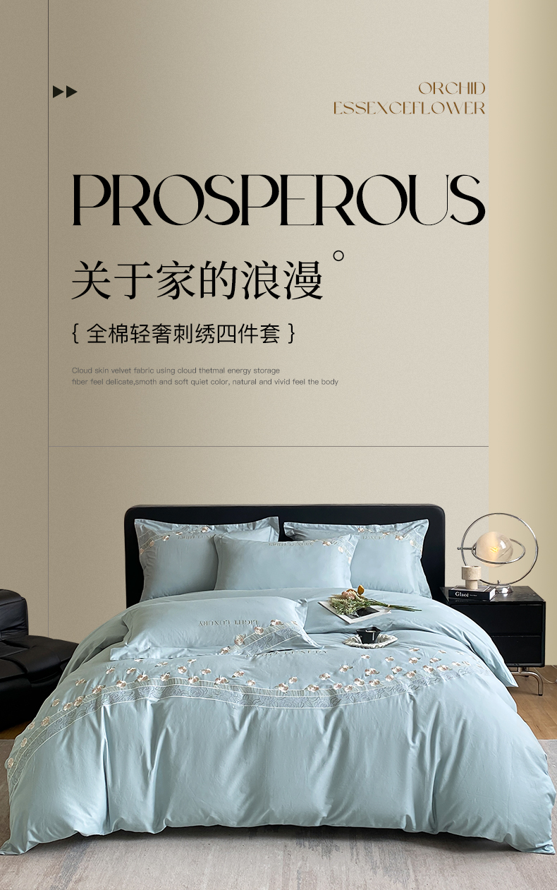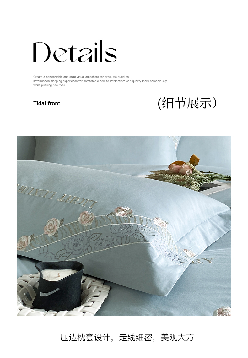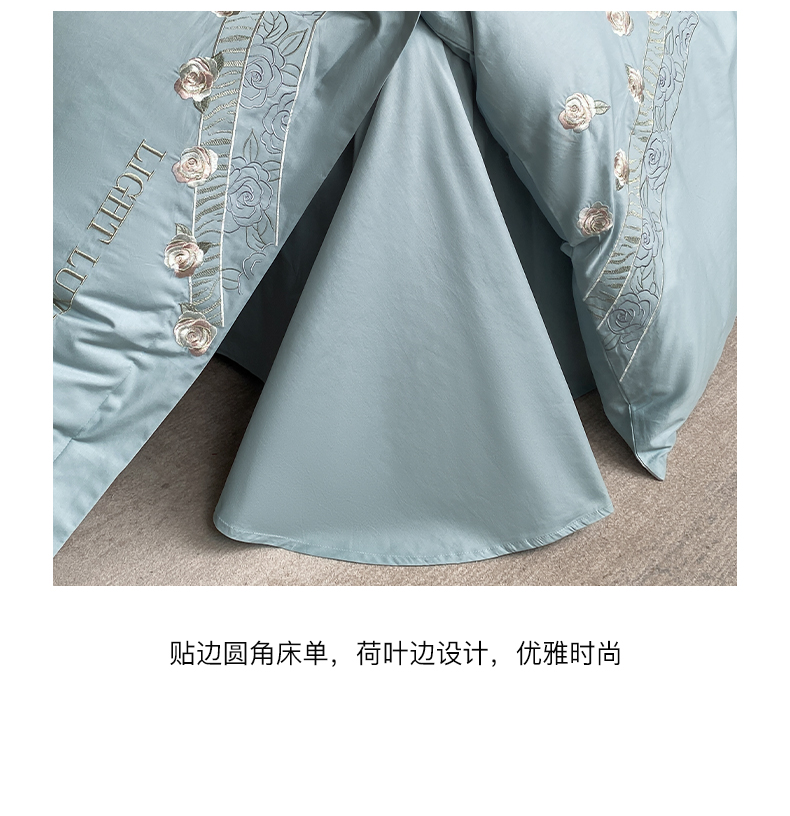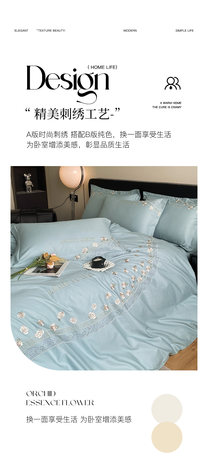 理想家家纺 2024新款全棉轻奢刺绣四件套-花溪 花溪-蓝