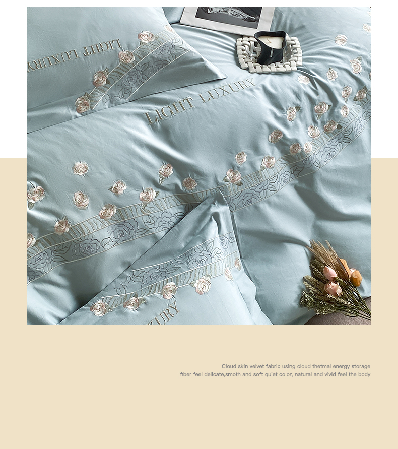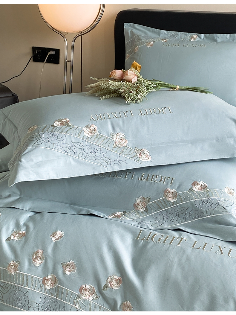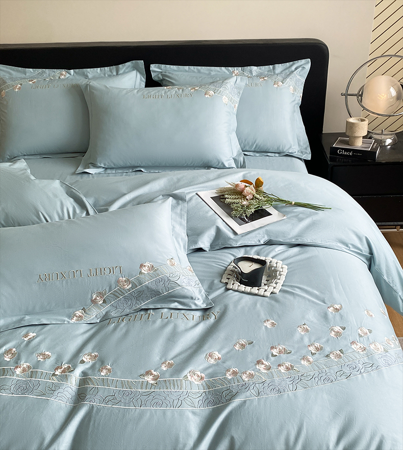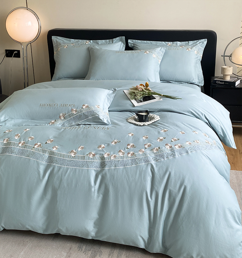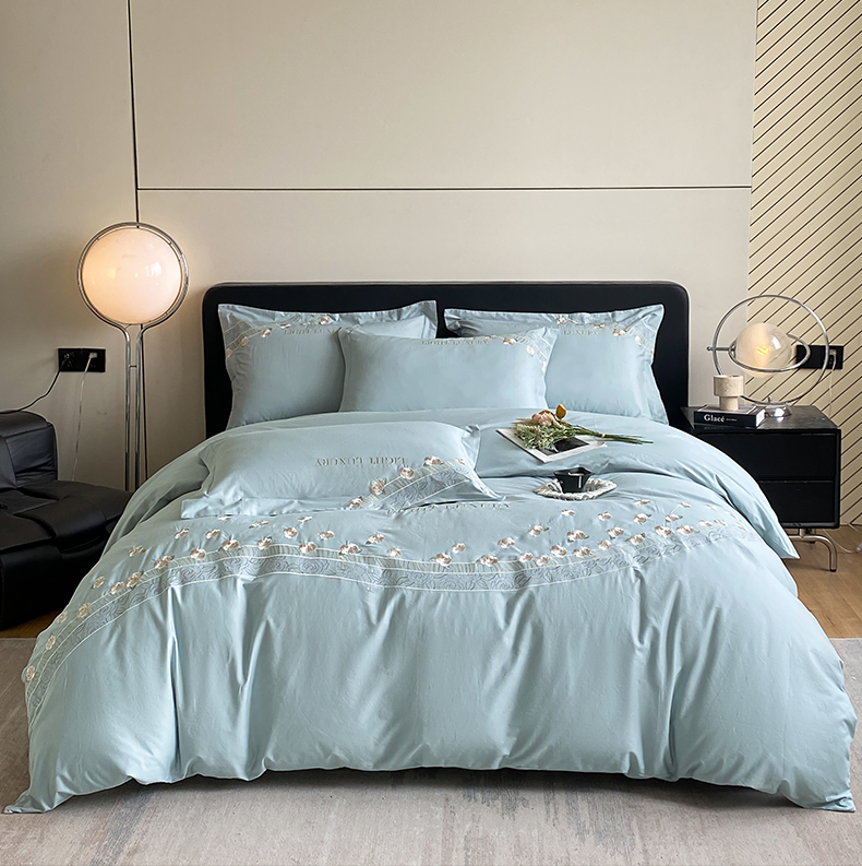 理想家家纺 2024新款全棉轻奢刺绣四件套-花溪 花溪-蓝