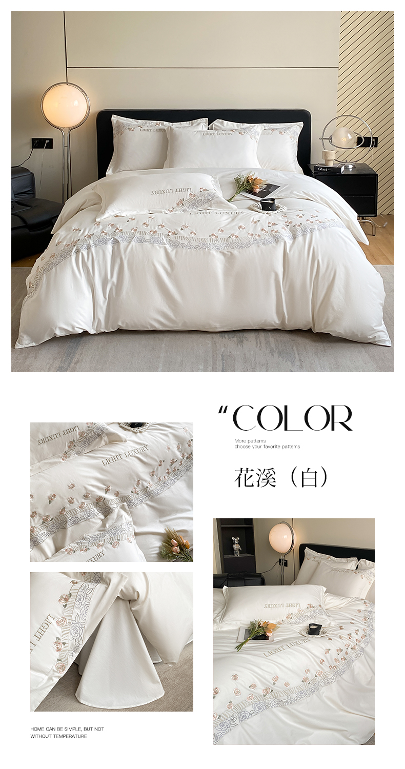 (总)理想家家纺 2025新款纯棉轻奢刺绣四件套-小秘密系列,小秘密-白,小秘密-粉,小秘密-蓝