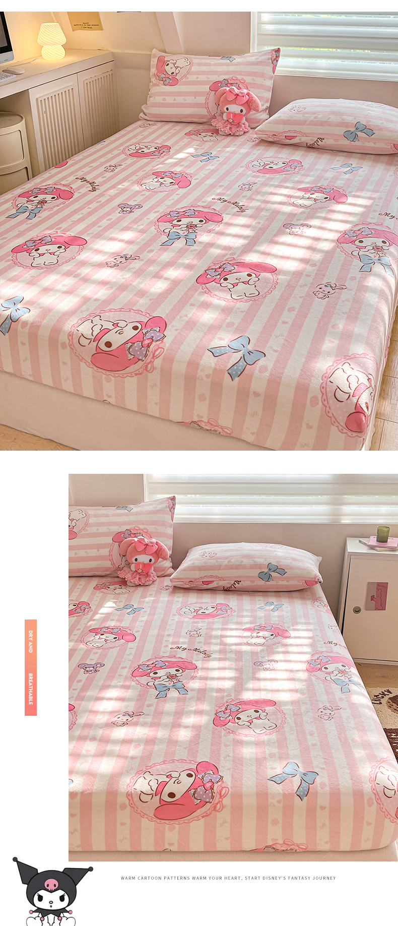 2024新款厚实保暖牛奶绒三丽鸥单品床笠床单 绒-X粉梦美乐蒂
