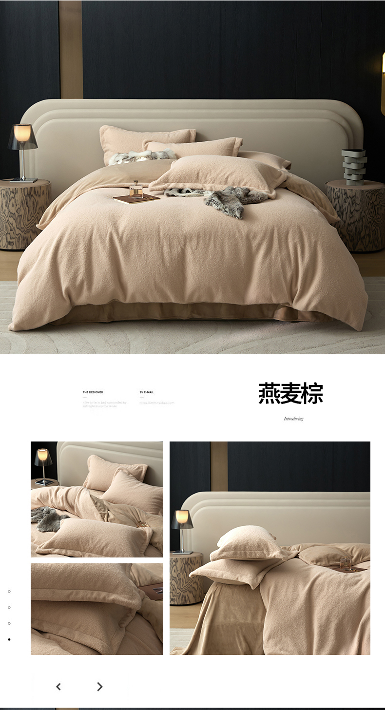 商品名称:金奇达家纺 2025秋冬保暖加厚绒类四件套多莉羊绒-德尔菲 燕麦棕
