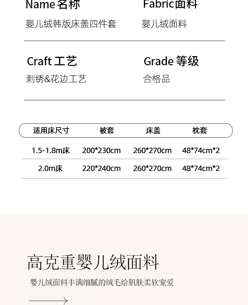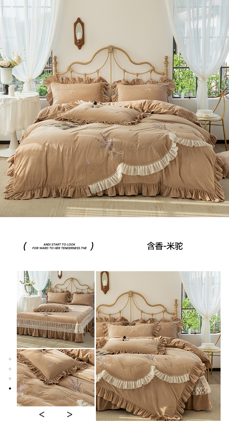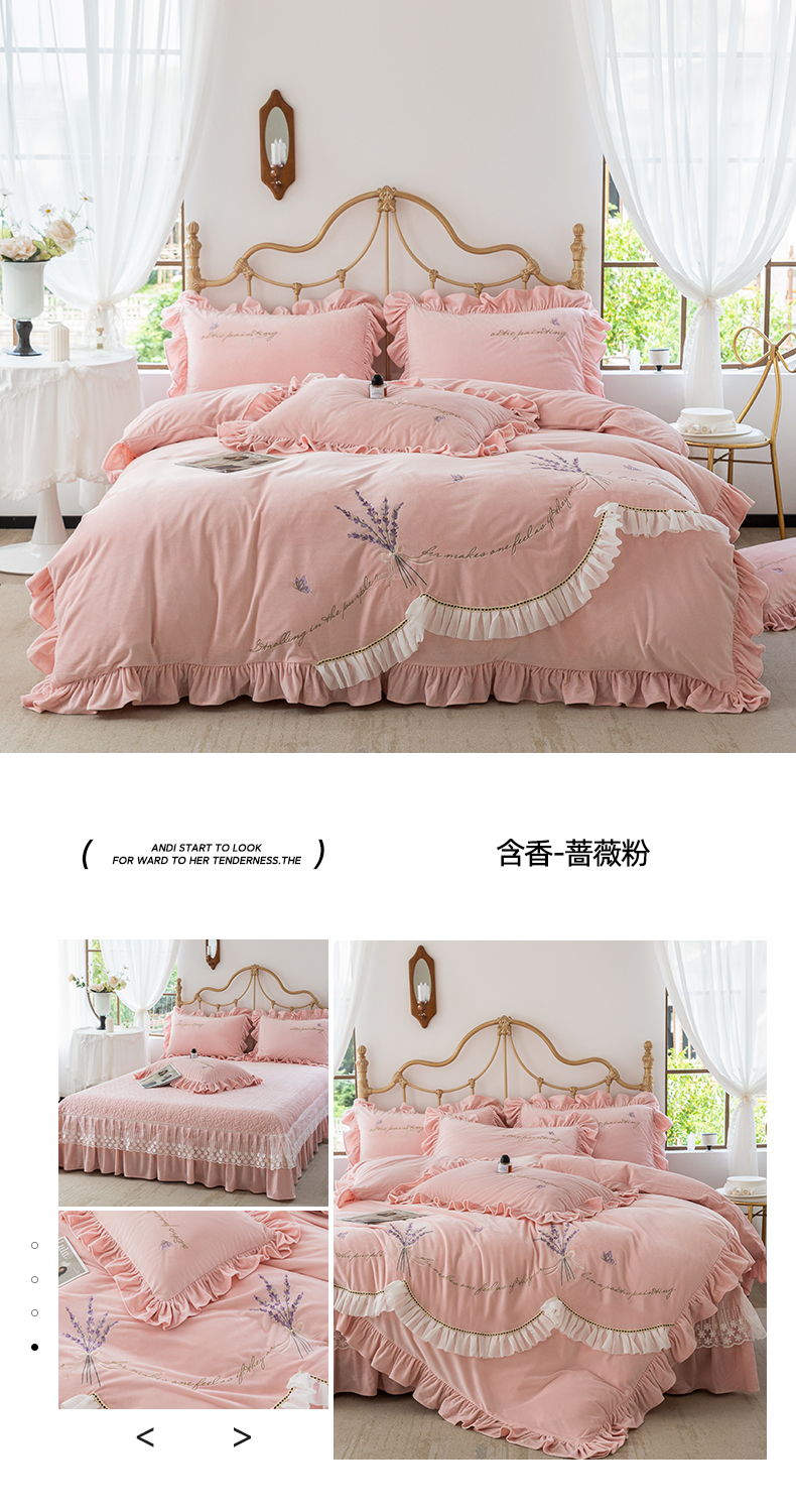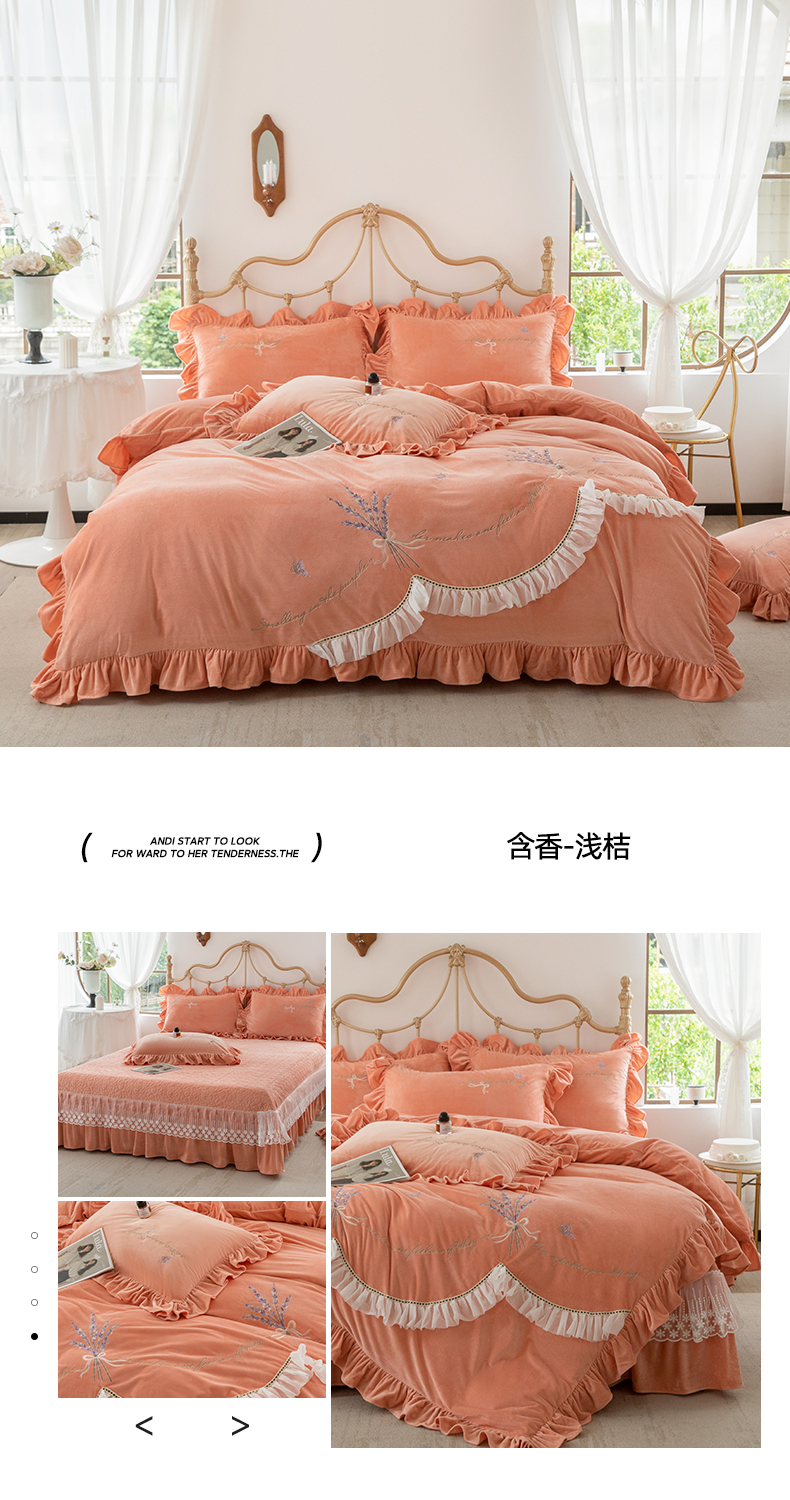 商品名称:(总)金绣美居 2025新款加厚婴儿绒韩版床盖绣花保暖四件套-含香
