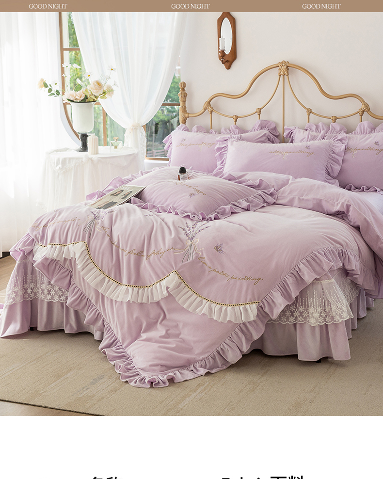 (总)金绣美居 2025新款卡通贴布绣款牛奶绒四件套-公主,公主粉,公主蓝